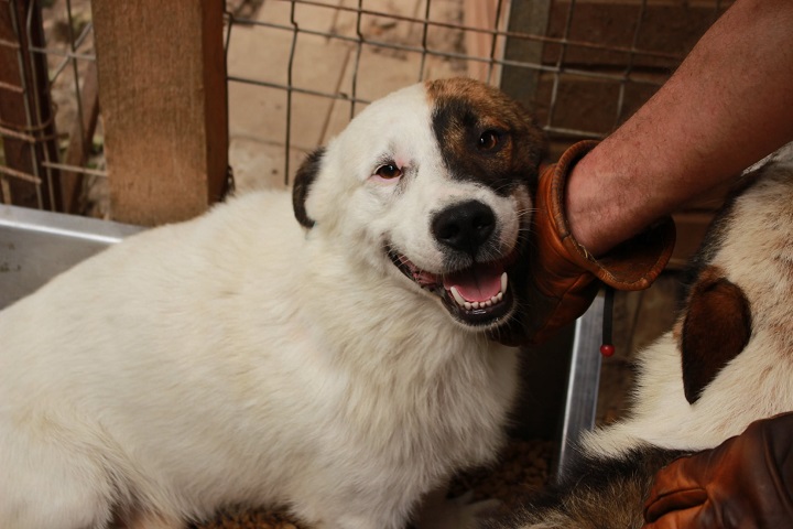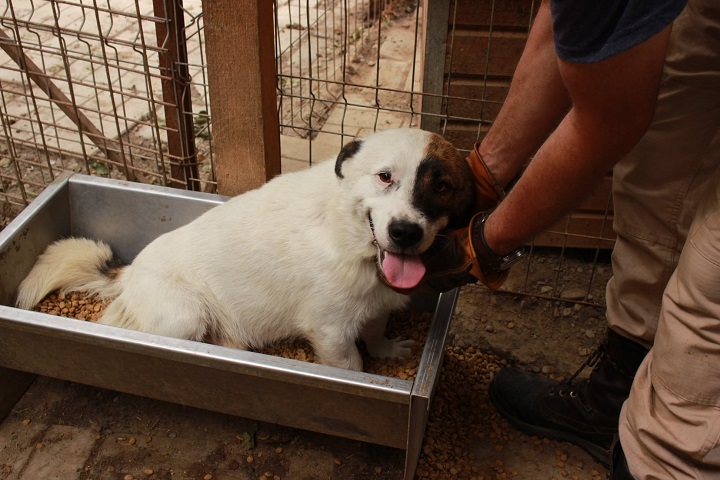 KLECKS wurde aus seinem Kennel geholt und in einen sehr kleinen Kennel umgesetzt, weil er sich sehr futterneidisch gezeigt hat und die anderen Hunde nicht mehr ans Futter lassen wollte. Er ist nicht grundsätzlich unverträglich und vorher auch lange Zeit in einer Gruppe gut mit den anderen klar gekommen. Zu Menschen ist er absolut toll, total nett und verschmust.