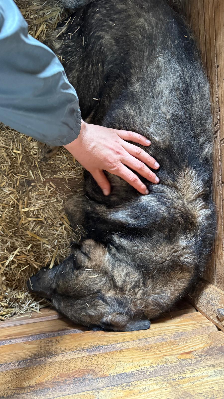 KLEIN VIOLA lag bei unserem Besuch nur in ihrer Hütte. Sie nahm unsere Leckerlies, wenn wir sie ihr hingelegt haben, außer der Hand hat sie sich nicht getraut. Leider wollte sie während unserer Anwesenheit diesmal nicht herauskommen.