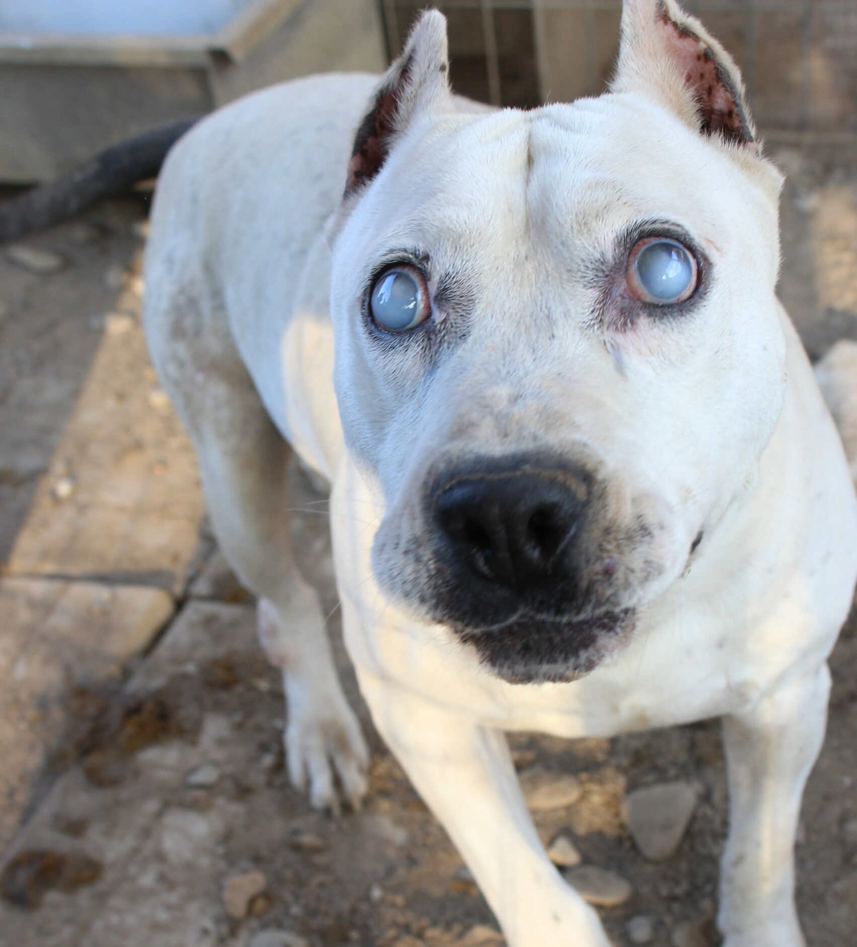 Für KNOX muss der Alltag im Shelter ein wahrer Albtraum sein. Er wurde von seinem Besitzer abgegeben und das, obwohl er seine Umgebung nur noch schemenhaft erkennen kann. Er ließ sich sehr gern streicheln und zeigte sich dabei absolut anhänglich. Er lebt zusammen mit LAYNIE, mit der er sich sehr gut versteht.KNOX darf aufgrund seiner Rasse leider nicht nach Deutschland vermittelt werden.