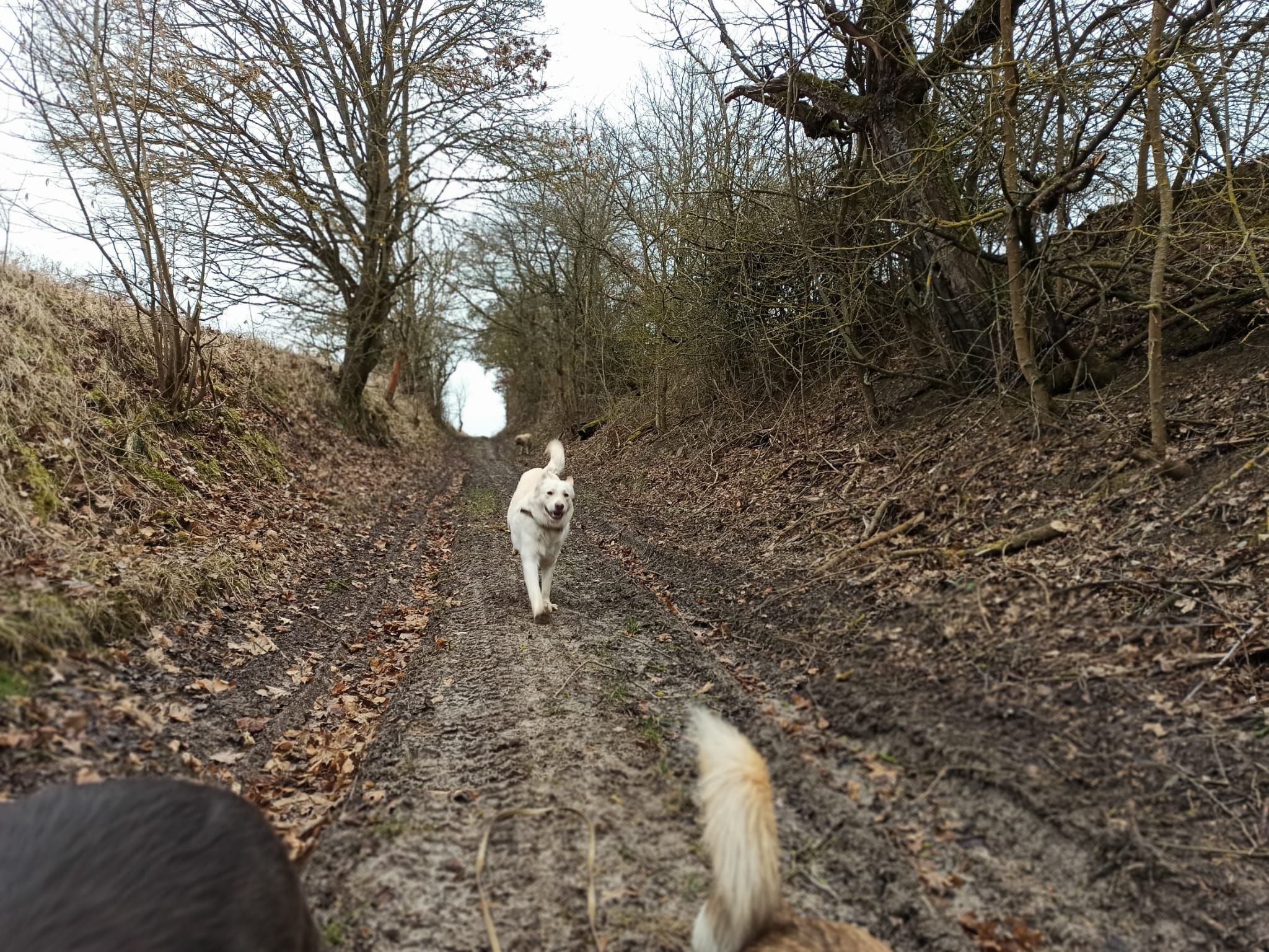 Auch beim Spaziergang braucht Knud sehr viel Sicherheit und Führungsqualität von seinem Menschen. Kommen ihm zum Beispiel andere Hunde entgegen verkündet er sehr gern lautstark, dass er ein doch recht großer Hund ist – nur für den Fall, dass es jemand nicht bemerkt hat. Selbiges Verhalten kann auch dann auftreten, wenn er Menschen begegnet, die ihm sonderbar – auf welche Weise auch immer – erscheinen. Knud lebt aktuell in einem gemischten Rudel und geht auch mit diesen spazieren. Dabei konnte noch kein ausgeprägter Jagdtrieb festgestellt werden und er neigt auch nicht zum Stöbern. Pferde kennt Knud. Zur Katzenverträglichkeit kann noch nichts gesagt werden.