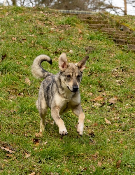 Er hat dabei schon begonnen einiges zu lernen was ein junger Hund können sollte: Kommen auf Ruf, Leinenführigkeitstraining, Begegnungen mit anderen Hunden und unterschiedlichste Umweltsituationen.