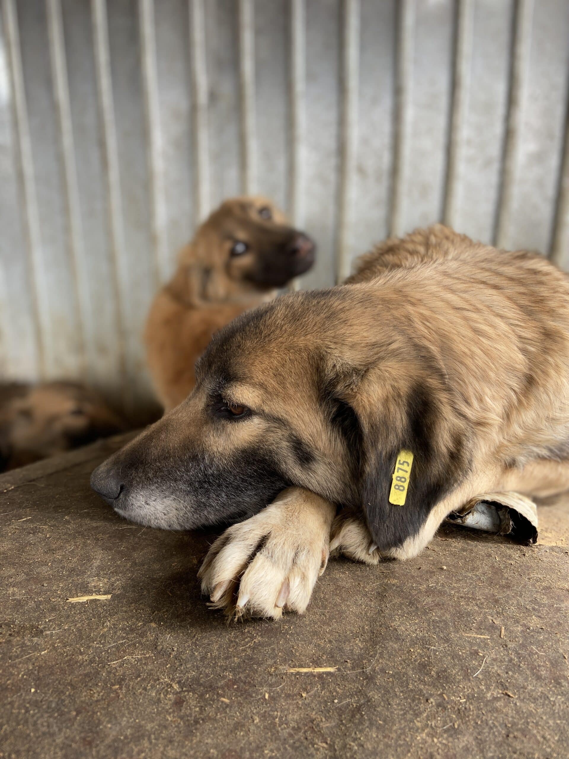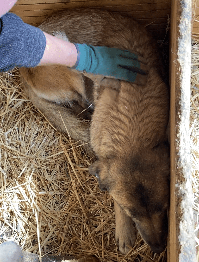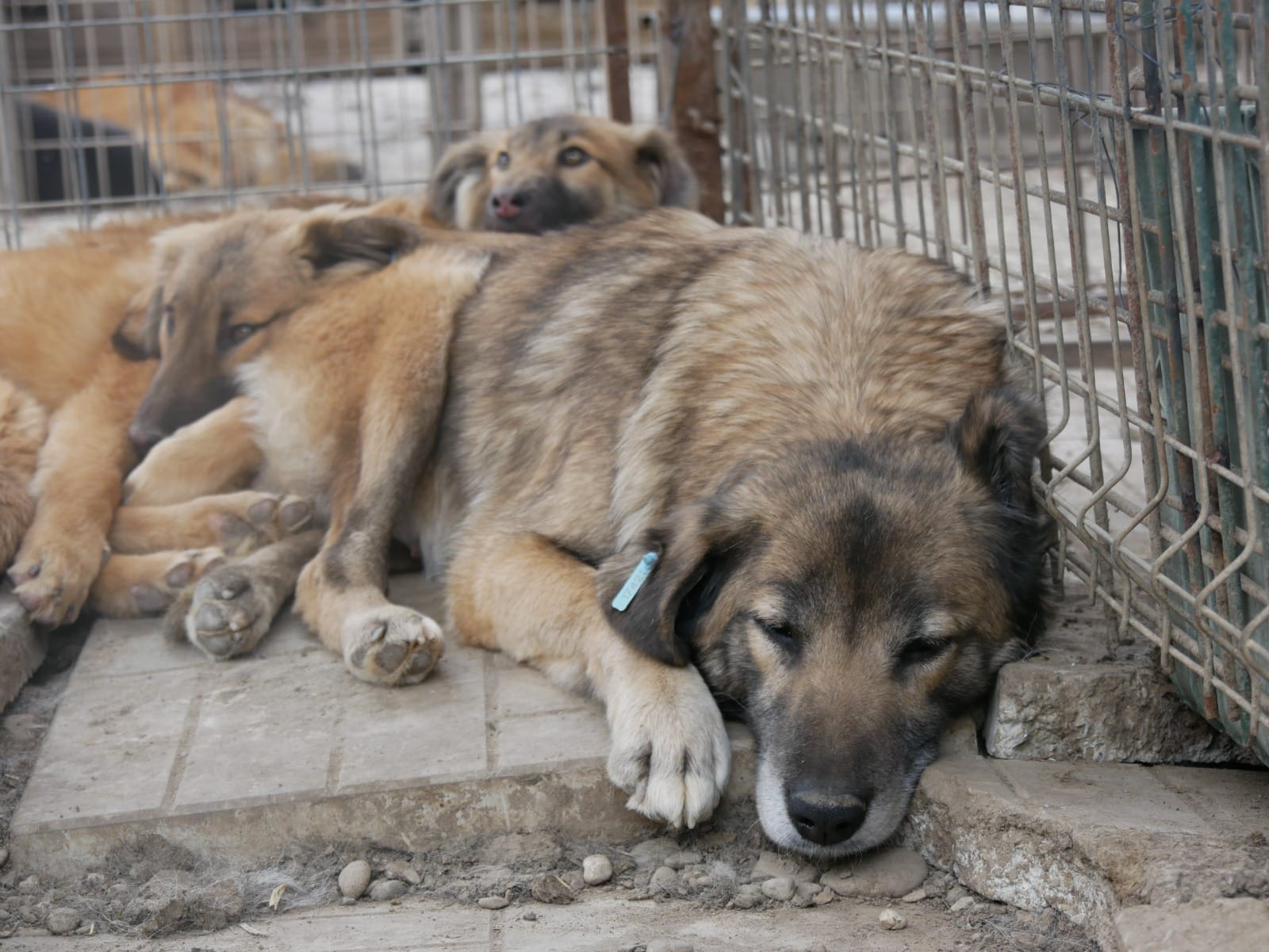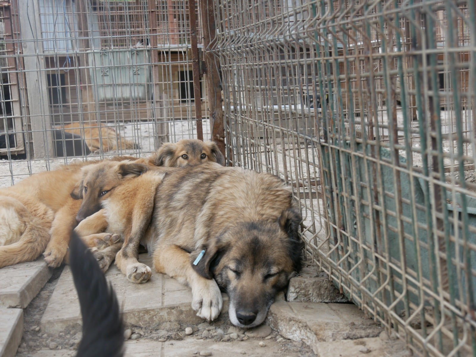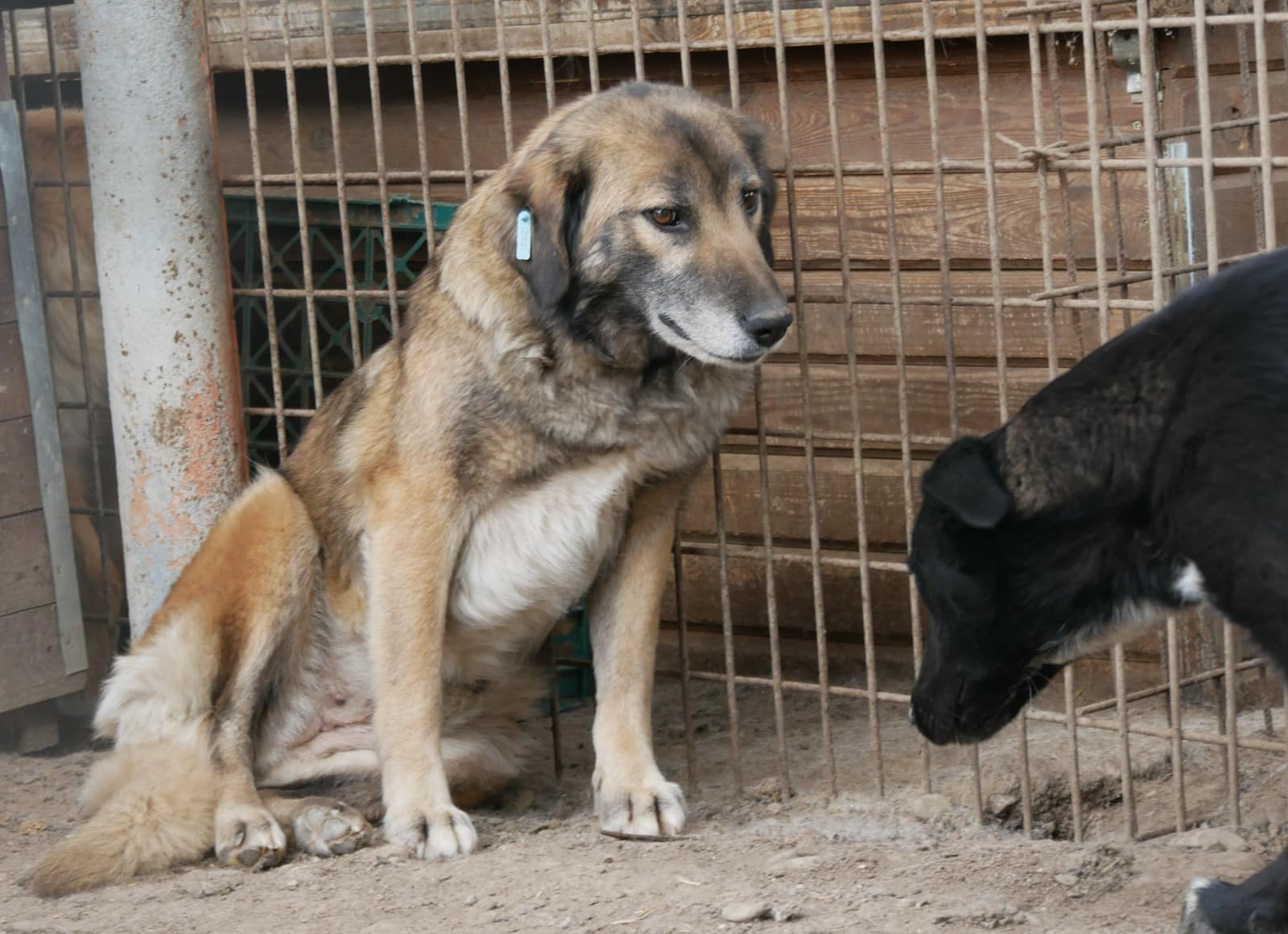Diese liebe Hundemama ist noch ganz neu im Shelter und teilt sich einen Kennel mit ihren Welpen und vermutlich auch noch „fremden“ Hundekindern – insgesamt 12! Als wir ihn betraten, lag sie entspannt auf dem Hüttendach und hob nichtmal den Kopf. Unsere Nähe verunsicherte sie erst, als wir sie streicheln wollten. Dann stand sie auf und legte sich in eine Hütte. Dort konnten wir sie problemlos überall anfassen, wir merkten jedoch auch, dass sie es überhaupt nicht genießen kann. In einem ruhigen Zuhause mit viel Geduld und vielleicht sogar einem souveränen Ersthund kann diese liebe Hündin sicher schnell auftauen und Vertrauen fassen.