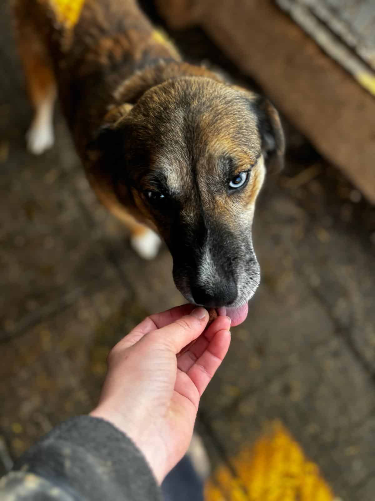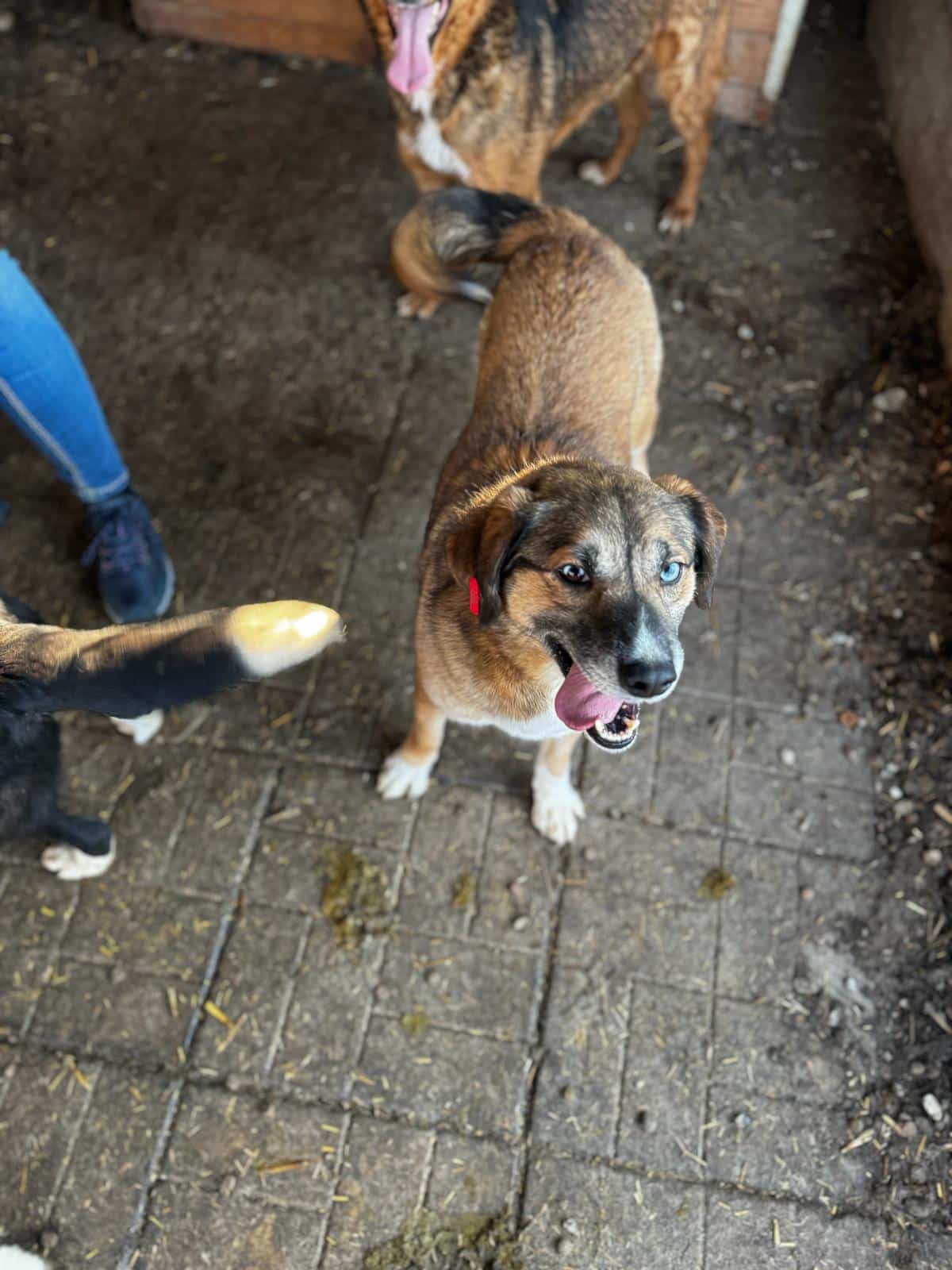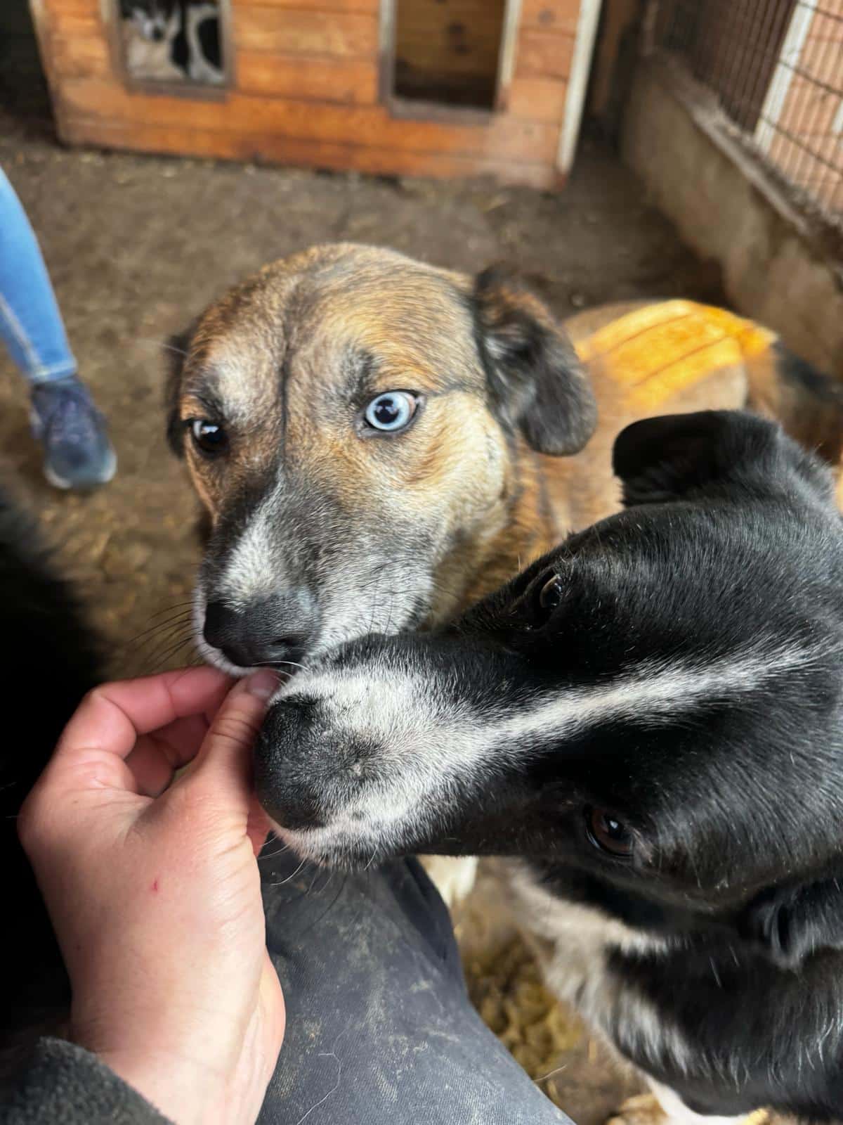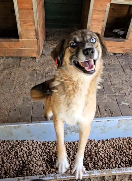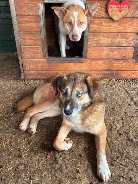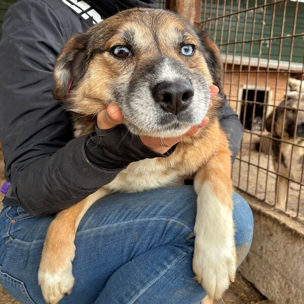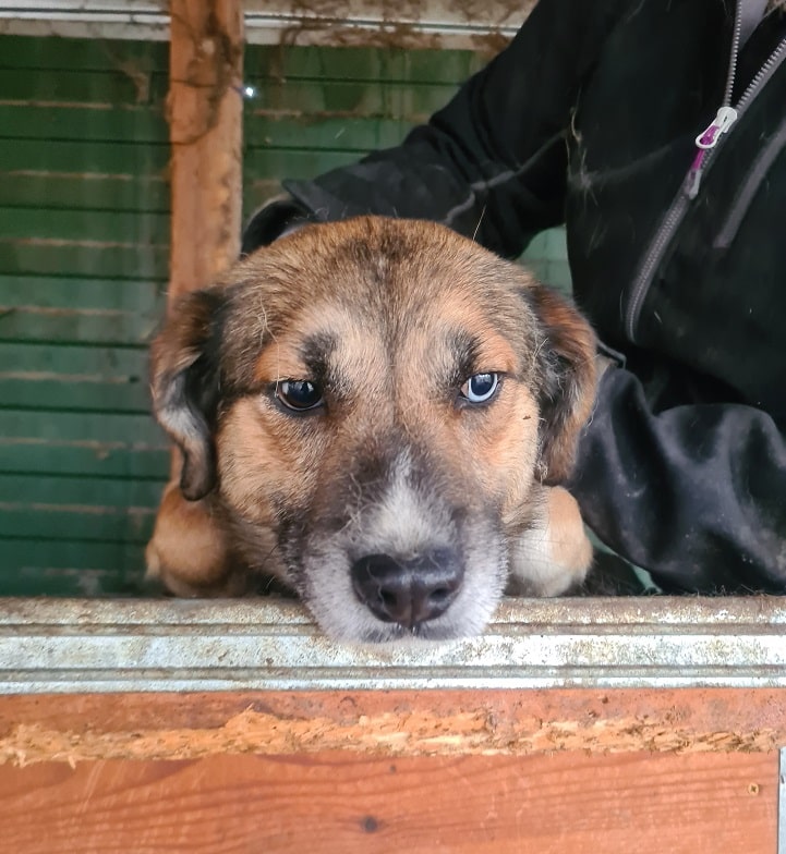 Unser süßer KURTI mit den auffallend schönen, verschiedenfarbigen Augen freute sich wieder sehr über unseren Besuch und die damit verbundene Abwechslung im sonst so tristen Shelter-Alltag. Neugierig kam er immer wieder mit seiner Hundefreundin bis zur Hand, schnupperte und schleckte daran und ließ sich zaghaft mit den Fingerspitzen berühren. Wir wussten – nach 2 Jahren Shelter muss KURTI über seinen Schatten springen, um hoffentlich endlich sein Ticket ins Glück zu erhalten. Kurzerhand schnitten wir ihm den Weg im Kennel ab und konnten ihn unter etwas Bedrängung schließlich halten und streicheln. Diese intensive Nähe ist noch neu und daher ungewohnt für KURTI, doch wir sind sicher, dass er in einer stressfreien Umgebung, bei erfahrenen und einfühlsamen Menschen weiter Fortschritte machen und Vertrauen lernen wird. Wir wünschen ihm, dass er schon bald diesen Ort verlassen, seine Sorgen vergessen und auf der Sonnenseite los leben darf. Von einem netten Ersthund würde er sehr profitieren.