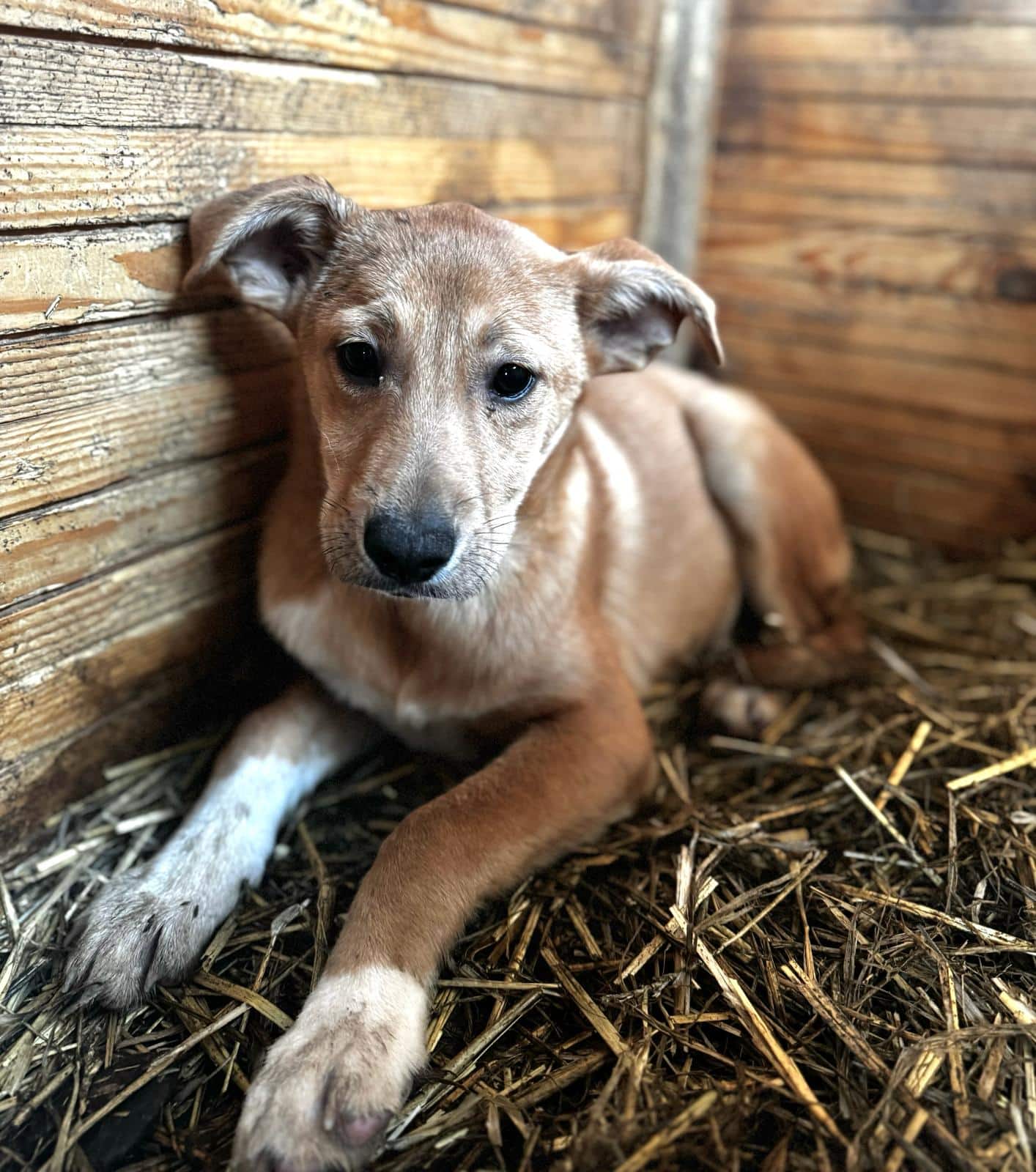 Wir haben KYA nach 4 Wochen erneut besucht. Anfangs schaute sie noch neugierig, was im Kennel passierte, zog sich dann aber in eine Hütte zurück. Wir konnten beobachten, wie sie dort im Sitzen einschlief. Der Stress ist ihr einfach zu viel. Sie sollte dringend ausreisen, um Ruhe und positiven Einfluss zu bekommen.