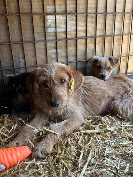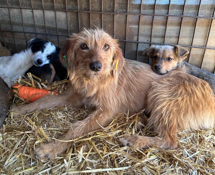 Mit den Welpen und älteren Hunden in ihrem Kennel ist sie verträglich und freundlich.
