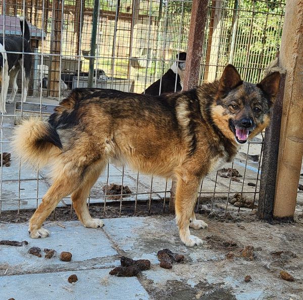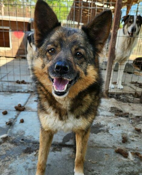 Die freundliche KYLIE galt länger als vermisst, nun wurde sie endlich wiedergefunden. Sie hielt sich anfangs eher im Hintergrund und beobachtete neugierig unsere Interaktion mit den anderen Hunden. Dabei erschien sie uns eher als eine ruhigere, unaufdringliche Hündin „der zweiten Reihe“, die den anderen lieber den Vortritt lässt. Nach und nach fasste sie aber ihren Mut zusammen und näherte sich uns an, sodass sie dann sogar Leckerchen aus der Hand nahm. Zum Streicheln fehlte KYLIE vorerst noch der Mut, mit etwas Zeit wäre aber sicherlich das Eis rasch gebrochen.