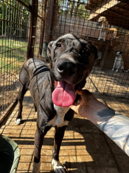 Diese schöne, eher ruhige Hündin war sehr angetan von unseren Zuwendungen, die im Bucov-Shelter ziemlich rar gesät sind. Sie war aber keinesfalls aufdringlich und hat geduldig gewartet, bis sie an der Reihe war. Die Hündin war bei unserem Besuch leider ziemlich eingeschüchtert, weil in der Nacht zuvor eine recht heftige Beißerei in ihrem Kennel stattgefunden hat.