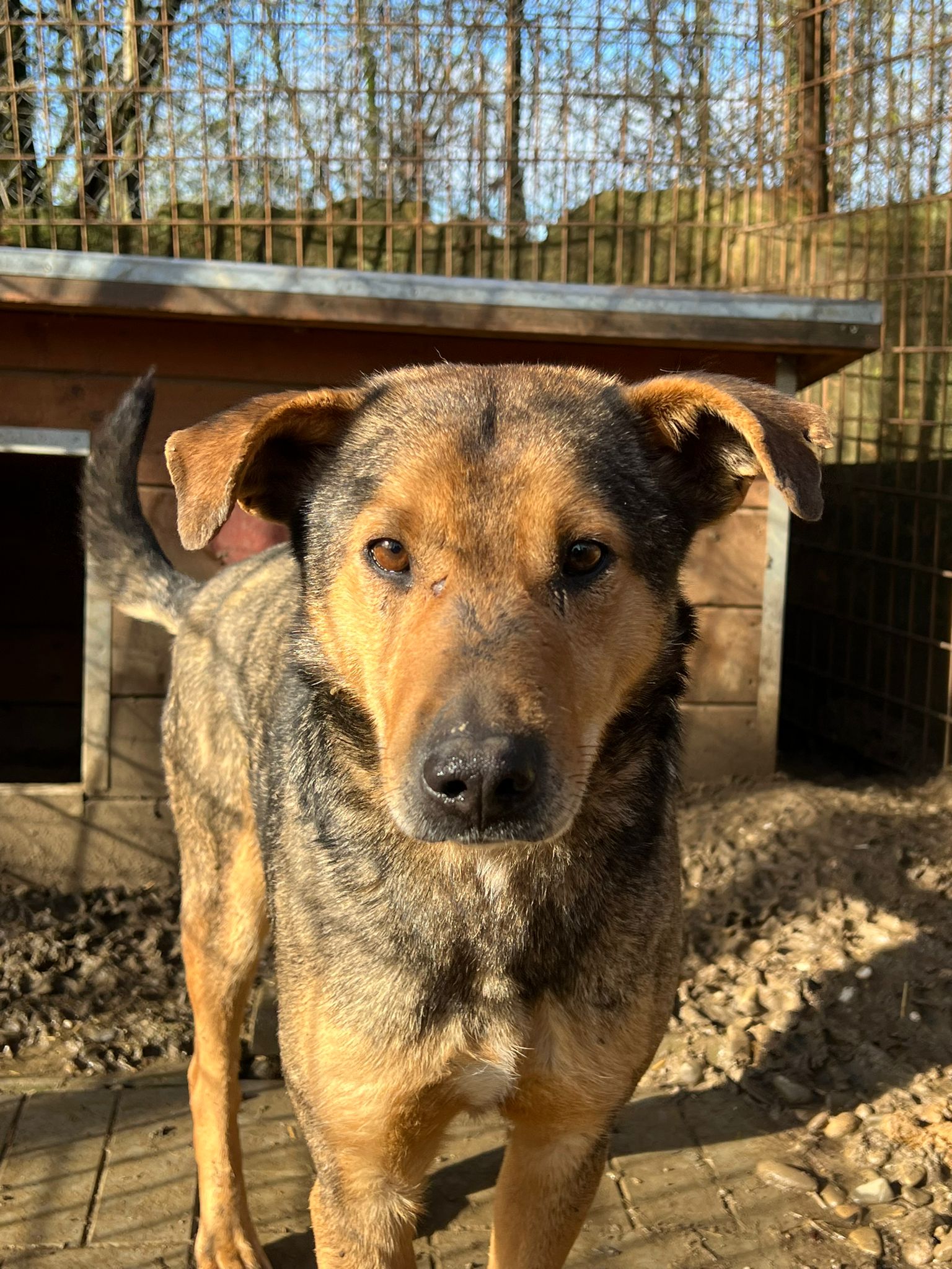 Ein sehr freundlicher Rüde, der gerne Leckerlies aus der Hand nimmt und neugierig das Geschehen betrachtet. Er braucht etwas Zeit zum auftauen, ist dann aber schon am Kopf und der Schnauze anfassbar. Durch den fehlenden Kontakt zum Menschen ist er allerdings noch etwas unsicher, würde sich aber gerne mehr trauen.