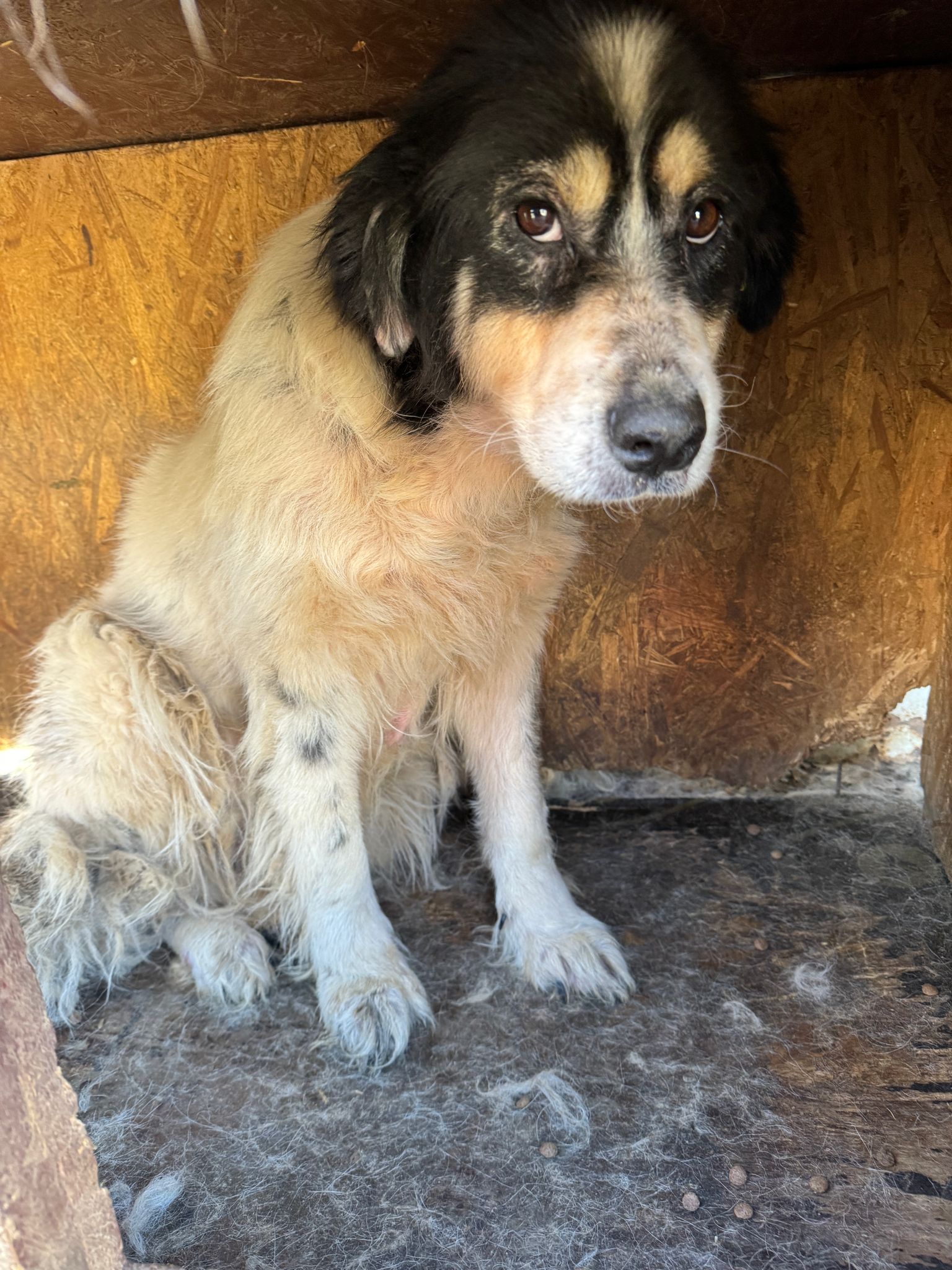 LABELLA ist eine sehr freundliche, rührende Hündin, die bereits seit dem Sommer 2023 in Bucov sitzt, aber erst im März 2024 sichtbar gemacht werden konnte. Sie war bei unserem Besuch nur in der Hütte und wir haben sie zunächst als unsicher eingeschätzt. Als wir uns aber mit ihr beschäftigten, nahm sie ganz zaghaft Leckerlies aus der Hand und wedelte dann mit dem Schwanz. Wir konnten sie daraufhin gut anfassen und streicheln und sie schien sich sehr zu freuen, dass wir uns mit ihr beschäftigen. Leider konnten wir sie nicht dazu bewegen, die Hütte zu verlassen. Wir gehen davon aus, dass sie sich entweder vor dem dreckigen Boden geekelt hat oder sich evtl. wegen der Hündin, mit der sie zusammensitzt, nicht rausgetraut hat. Wir konnten sie nicht in direkter Interaktion mit anderen Hunden beobachten, schätzen sie aber verträglich ein.