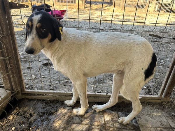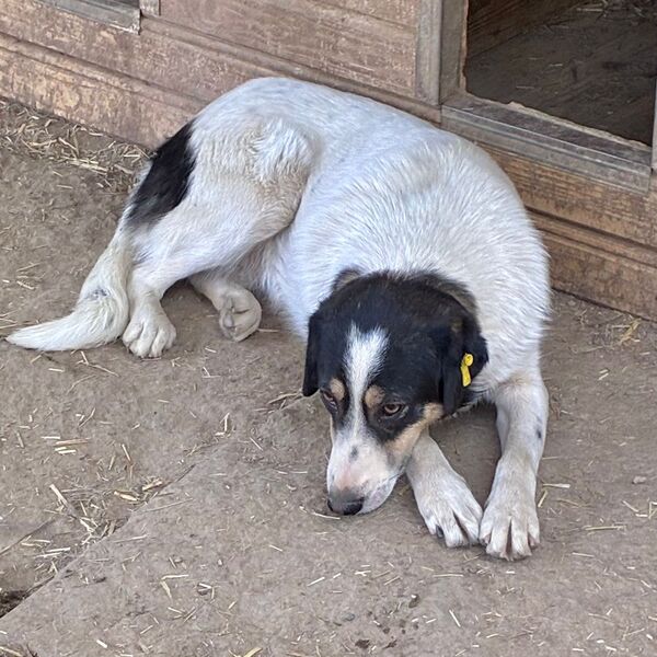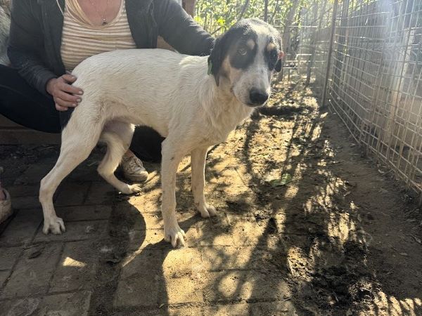 LAILA ist eine hochbeinige, sehr hübsche tricolor Hündin mit viel Weißanteil und feinen Dalmatinerflecken. Sie sitzt wahrscheinlich mit ihrer Mutter in einem Zwinger. Genau können wir das natürlich nicht sagen aber die beiden sehen sich sehr ähnlich und waren viel beieinander. Sie gaben sich gegenseitig Sichherheit, denn Menschen sind für die beiden noch sehr ungewohnt. LAILA begegnete uns deshalb sehr vorsichtig und beobachtete jede unserer Bewegungen. Sie ließ sich trotzdem von uns anfassen und auf ein Hüttendach heben. Sie wird auf jeden Fall ihre Eingewöhnungszeit brauchen aber mit viel Geduld und Verständnis sicher auftauen. Sie ist noch jung und hoffentlich findet sie ihre Menschen, damit sie nicht im Tierheim alt werden muss und ein aufgeschlossener Hund werden kann. Ein souveräner Zweithund wäre dafür sicherlich hilfreich.