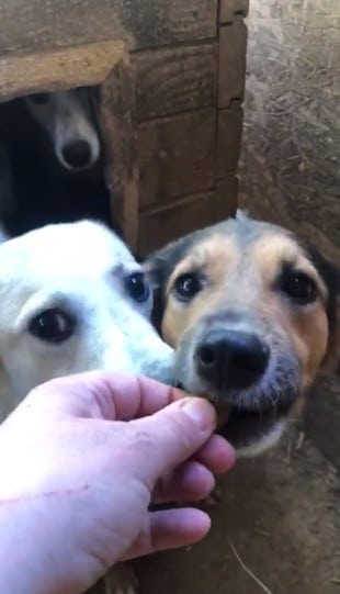 Lainy ist noch neugierig und kam sofort raus, um unsere Leckerchen zu nehmen. Mit etwas Geduld und im Idealfall mit einem souveränen Zweithund kann man sie zeitnah zutraulicher bekommen. Sie ist sehr verträglich. Hoffentlich findet sie liebe Menschen, die ihr den Weg als Familienhund zeigen.