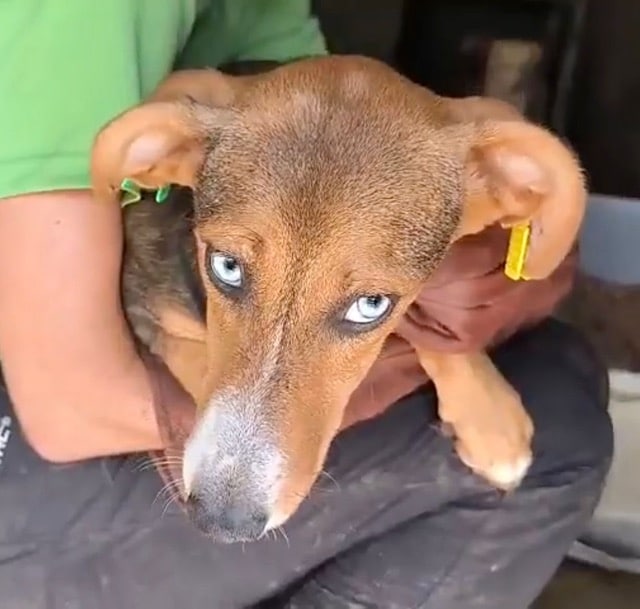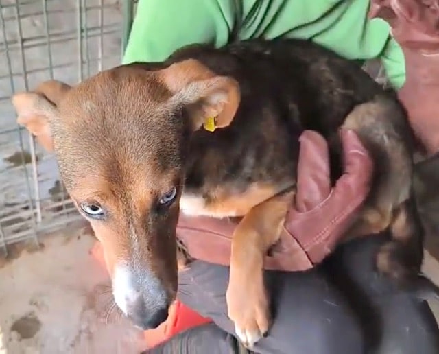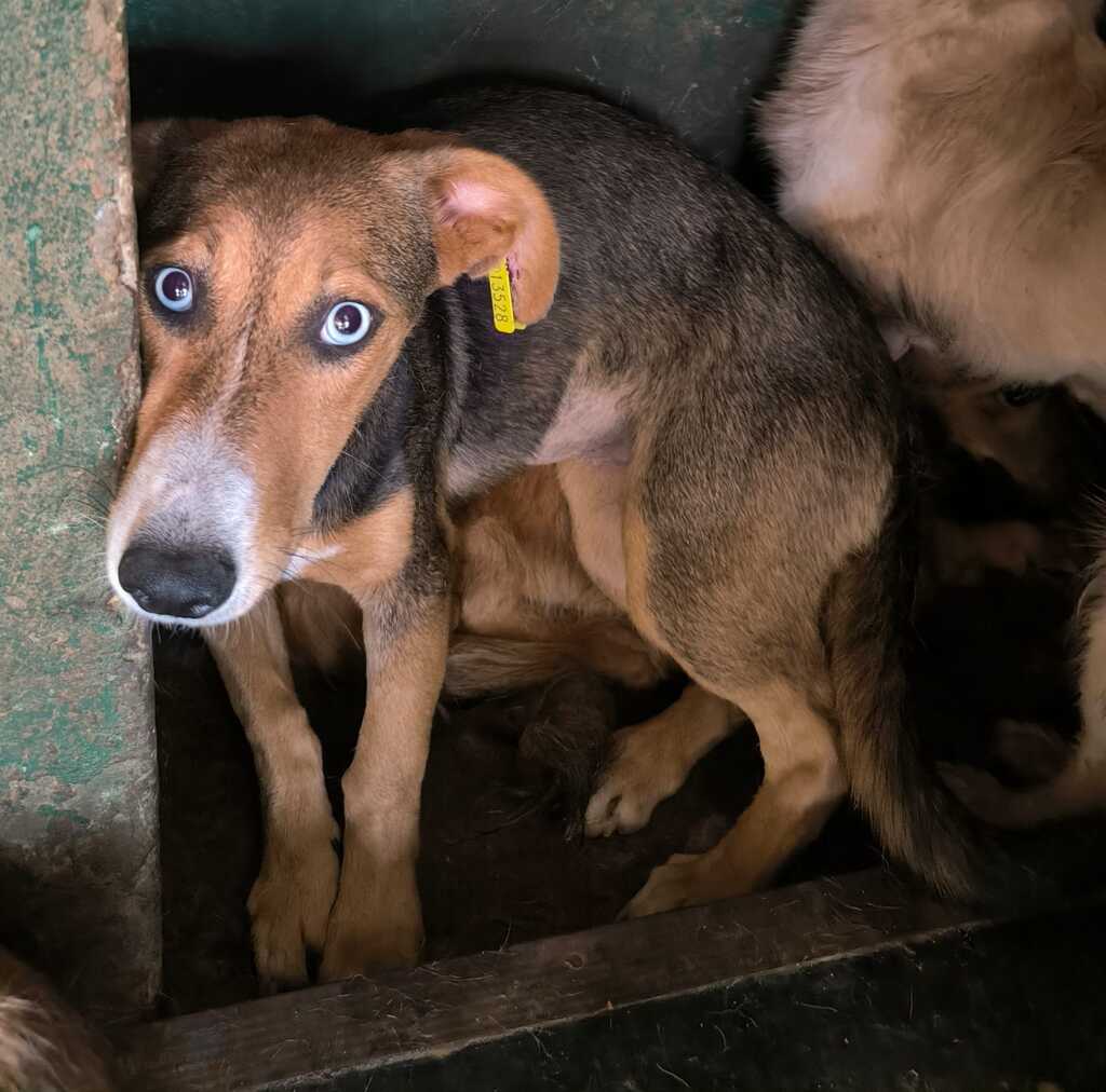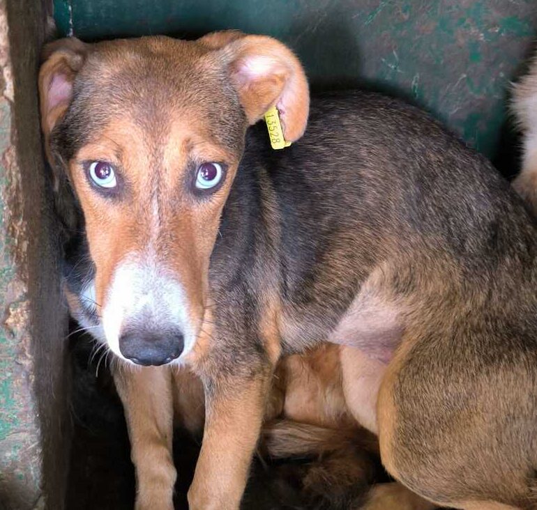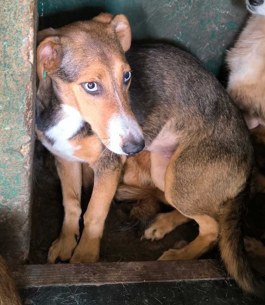 Als wir den engen Kennel betraten, versteckte sie sich verunsichert in der Ecke.