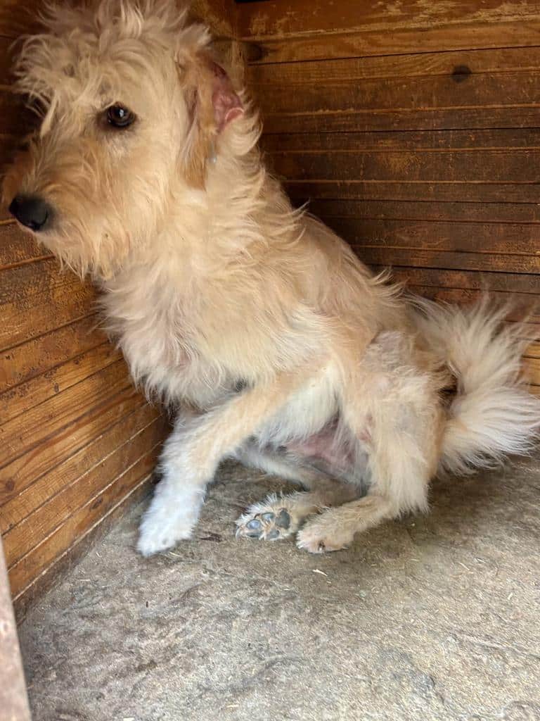 LARGO’s Hautprobleme werden schlimmer und eine Heilung unter den Bedingungen ist nur bedingt möglich. Er bleibt stets defensiv und lässt sich unter Bedrängung anfassen. In einer ruhigen Umgebung taut er mit Sicherheit schnell auf. Leider hat er es nicht so leicht in seinem Kennel. Er wird von seinen Kennelkollegen kontrolliert und immer wieder in die Hütte geschickt. Wehren kann er sich nur bedingt.