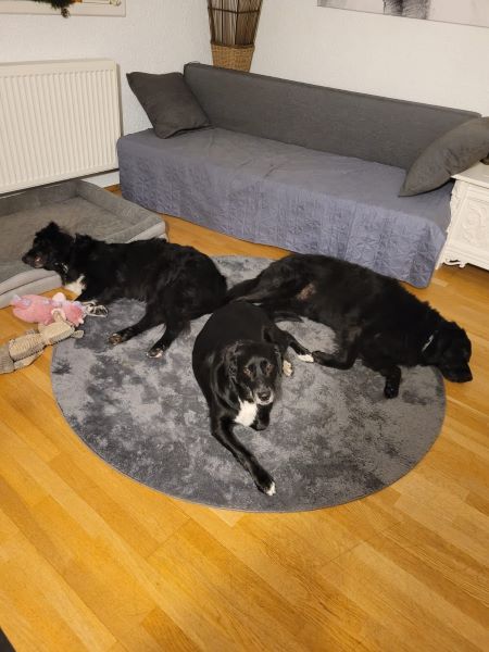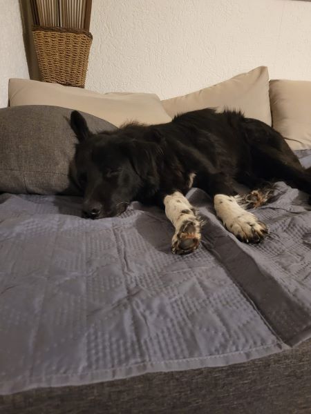 Nur schnell rennen kann ich nicht lange. Irgendwann habe ich mir mal mein rechtes Vorderbein mehrfach gebrochen. Ich bin damit rumgelaufen bis es nicht mehr weh tat. Und jetzt ist es etwas krumm, aber das stört mich nicht. Autofahren finde ich super, deshalb springe ich immer gleich in den Kofferraum. So ne komische Box brauche ich nicht. Ich will ja ab und zu auch mal rausgucken. Und bei meinen Pflegeeltern habe ich ein eigenes Sofa und ein Hundekörbchen. In beidem mache ich es mir gerne gemütlich. Richtig super finde ich die Kuschelzeit, wenn wir alle 5 zusammenliegen und kuscheln. Ich habe nämlich bei meinen Pflegeeltern noch Balu (Rüde) und Maya (Hündin). Die sind beide echt lieb zu mir. Ich kann mir aber auch vorstellen Einzelprinz zu sein. Beides ist okay. Ansonsten finde ich bürsten noch ganz gut und ab und zu kannst du mich auch baden und Krallen schneiden. Beim Doktor benehme ich mich natürlich, der will mir ja nichts Böses. Ja also wie schon gesagt, mit mir kannste eigentlich alles machen. Das einzige, was ich nicht so mag sind Katzen und Kleinkinder. Ach, und bevor ich es vergesse, ein Garten wäre super, ich bin nämlich ein Herdenschutzhundmix und deshalb brauche ich was zu bewachen. Du kannst mich auch Checker nennen, ich bin nämlich immer wachsam.