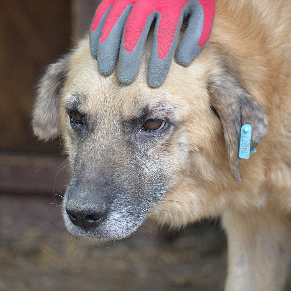 LASO wirkt müde. Die Monate in Bucov haben ihn gezeichnet. Dennoch ist er nett und anhänglich und genießt einfach die menschliche Nähe.