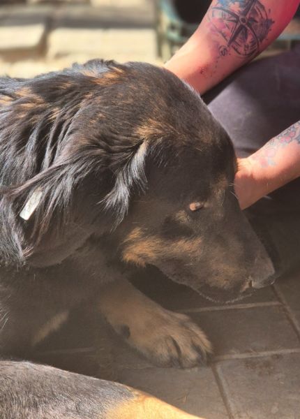 LAURI ist ein freundlicher, noch etwas zurückhaltender junger Rüde. Er lag bei unserem Besuch erst nur auf dem Hüttendach, wedelte dort aber freundlich mit der Rute und schien sich über uns zu freuen. Wir konnten ihn sehr gut anfassen, hatten dabei aber das Gefühl, dass er noch etwas unsicher ist – wahrscheinlich, weil er Kontakt zu Menschen einfach nicht so kennt. Er ließ sich aber dennoch problemlos streicheln und sogar von uns vom Hüttendach runterheben. Ein netter Kerl, der in einem eigenen Zuhause wahrscheinlich schnell auftauen würde.