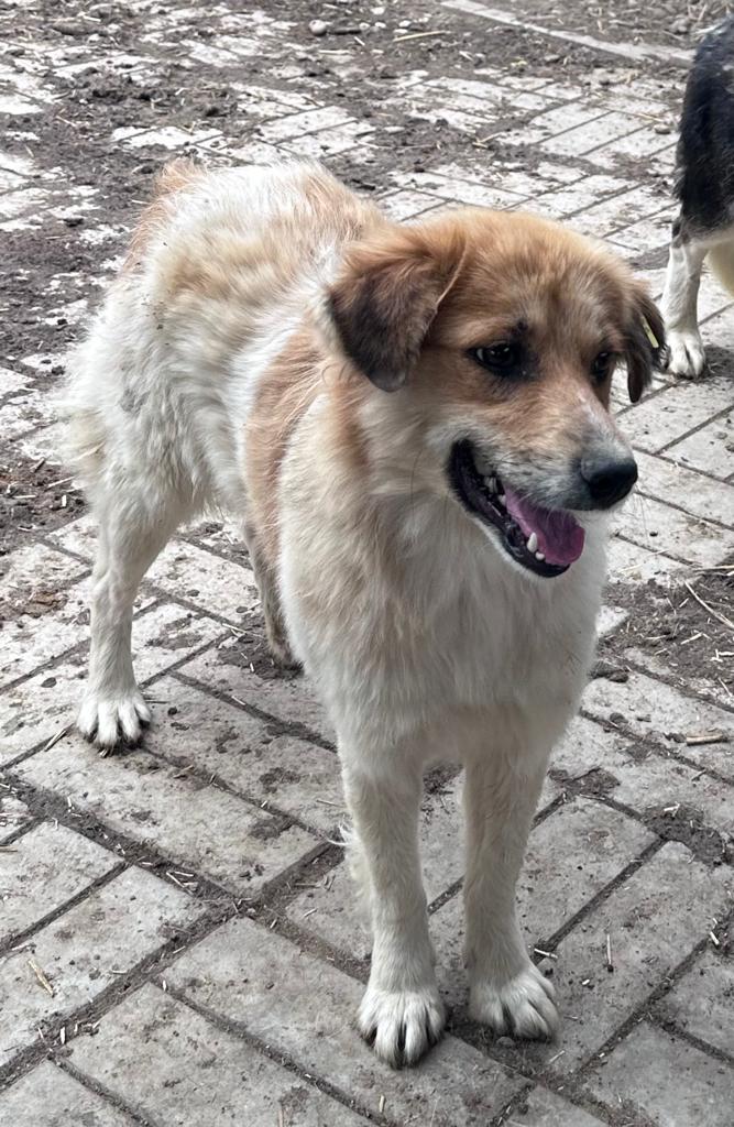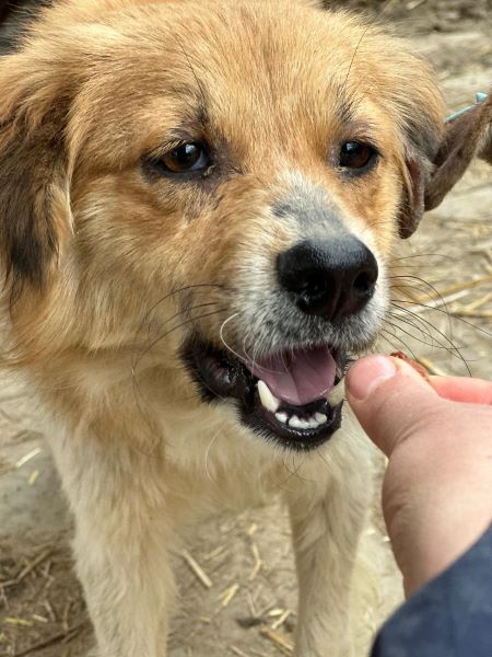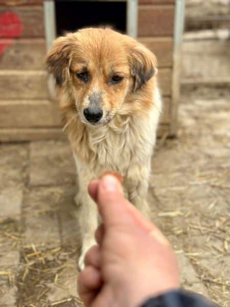 Sehr nette und interessierte Hündin. Obwohl er so eng im VetKennel war, suchte sie den Kontakt zu uns und nahm Leckerchen. In der großen Gruppe zeigte sie sich verträglich. Mit etwas Eingewöhnungszeit kann man sie gut an ein Familienleben mit uns gewöhnen.