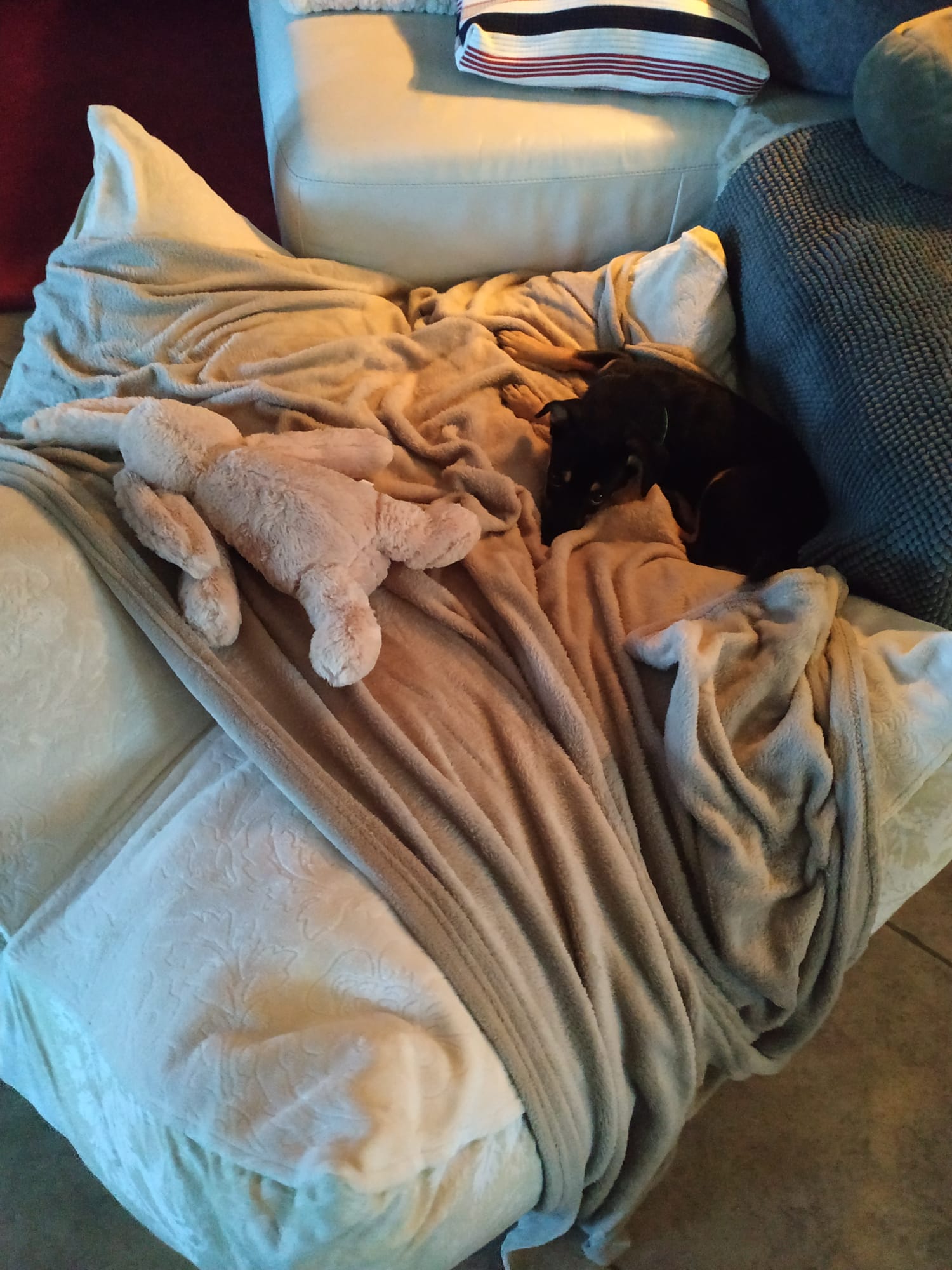 Sie geht gerne spazieren, bleibt dabei dicht bei einem, kann im Auto mitfahren, kann mit ihren Hundekumpeln eine angemessene Zeit alleine bleiben. Im Haus legt sie sich ruhig ab, draußen dreht sie gerne mal auf und wetzt, was die kleinen Beinchen hergeben.