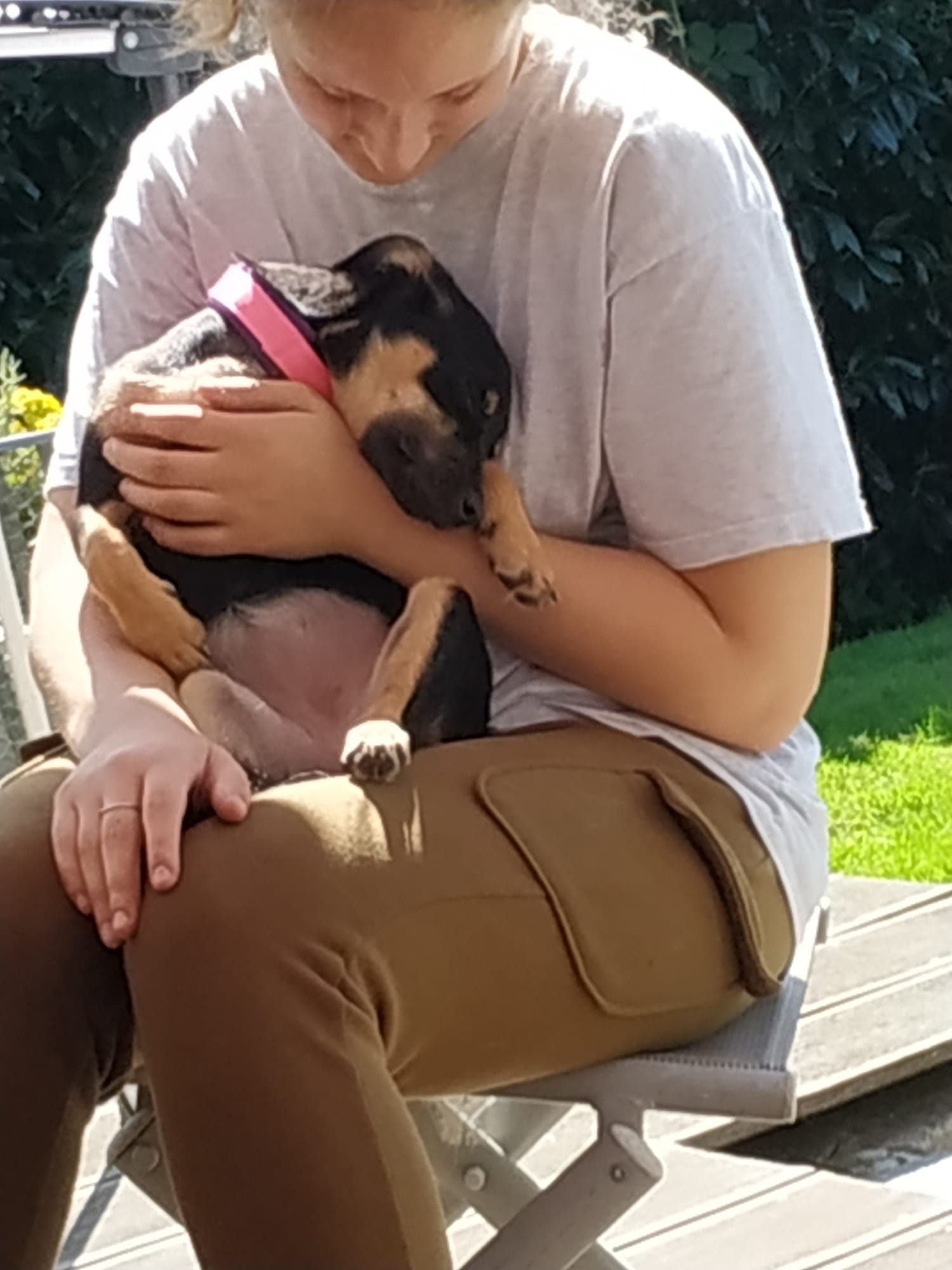 Laylani wird gerne Zweithund; da sie hier oft aber auch schon von dem Mutter-Tochter-Gespann ausgegrenzt wird, hat sie sich schon noch mehr ans Pflegefrauchen gehängt und wird sicherlich als Einzelhund genauso glücklich.