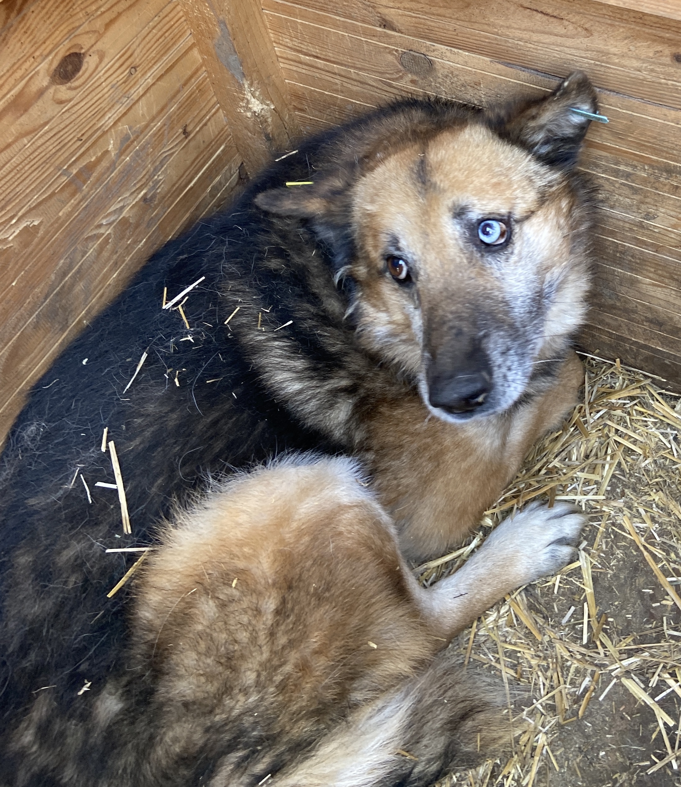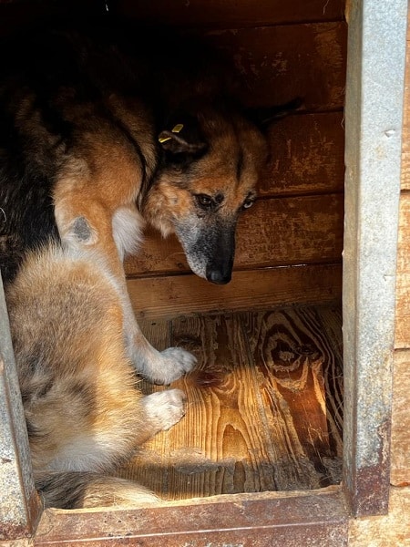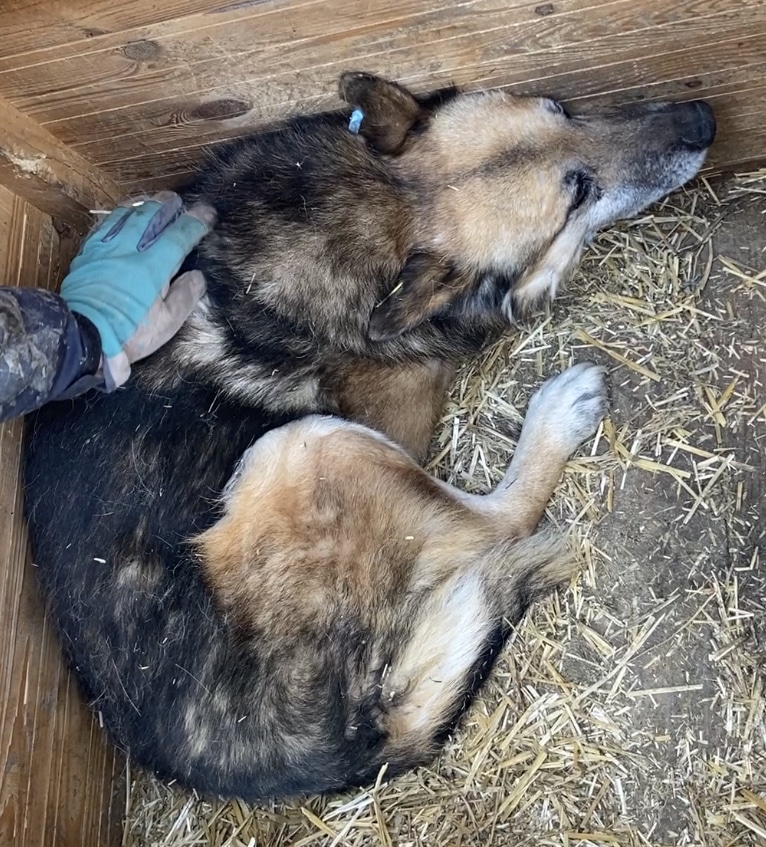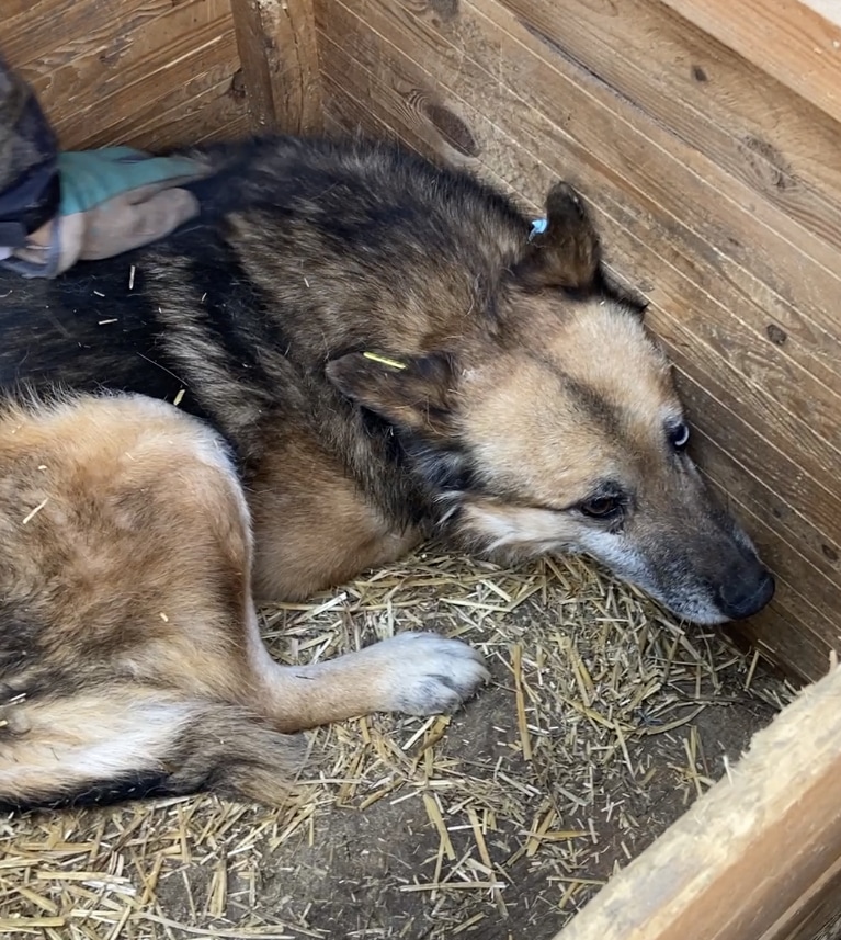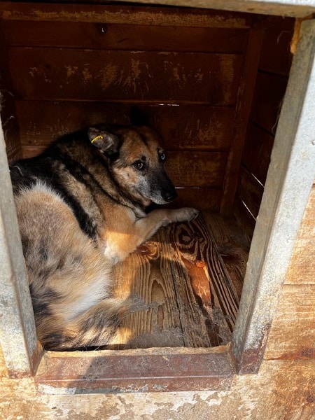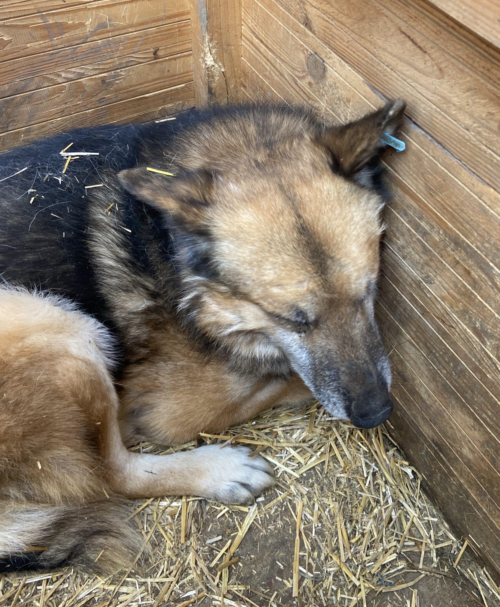 Leider fanden wir LAZARUS auch dieses Mal resigniert in seiner Hütte. Er nahm das Leckerchen vom Boden, aber für mehr fehlte ihm wohl die Energie.