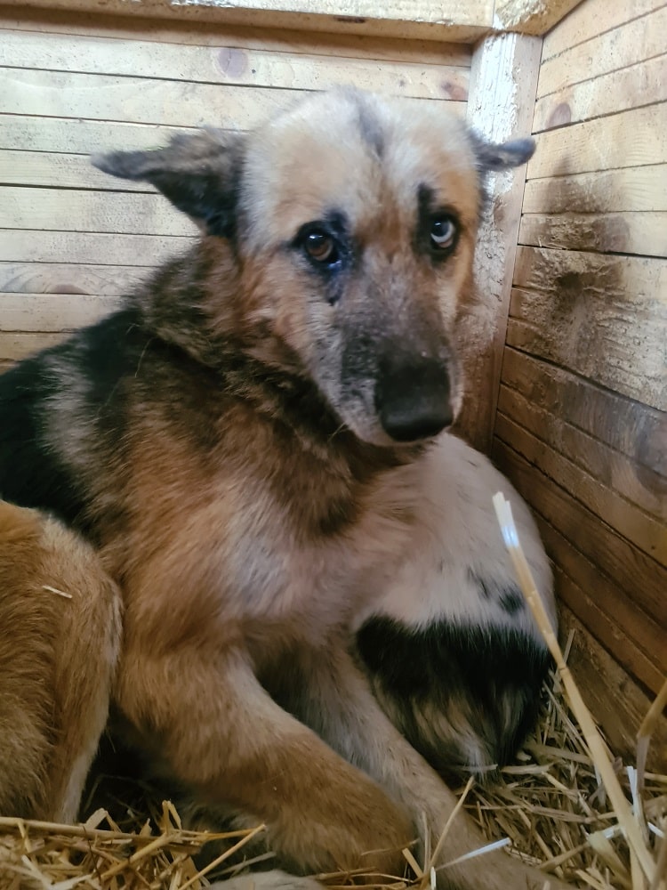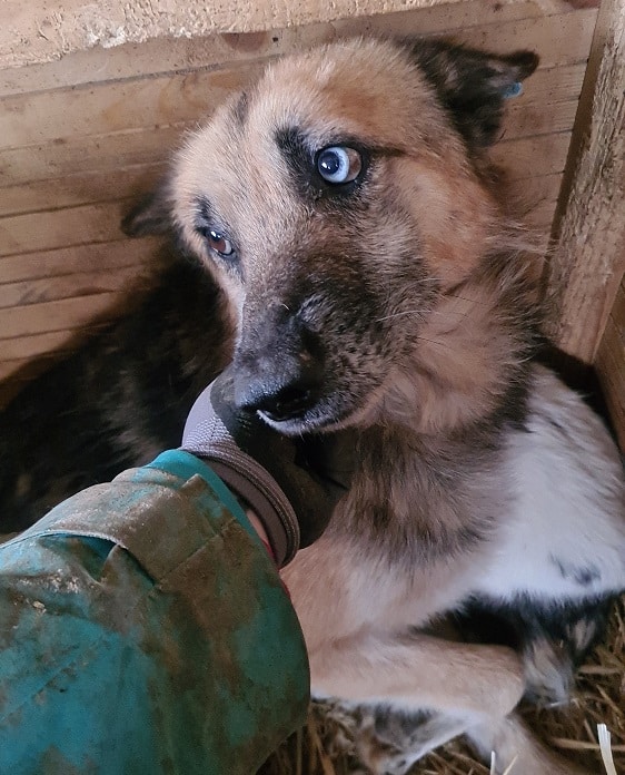 Der wunderschöne LAZARUS ist völlig überfordert im Shelter. Wir fanden ihn so vor, wie wir ihn auch schon im Dezember kennengelernt haben – zusammengekauert in einer Hütte. LAZARUS wusste nicht, was er von unserem Besuch halten sollte, er blieb einfach liegen und bleibt auch bei Bedrängung defensiv. Wir konnten ihn in der Hütte überall streicheln, er versteinerte dabei und hielt es tapfer aus. LAZARUS wird etwas Zeit brauchen, um Vertrauen zu uns Menschen fassen zu können. Er lebt mit 2 Hündinnen zusammen, was anscheinend gut funktioniert. Es wird höchste Zeit, dass der hübsche Rüde das Shelter verlässt und die Welt außerhalb seiner Hütte kennenlernt. Er sucht Menschen die sicher im Umgang mit unsicheren Hunden sind und auch ein souveräner Ersthund würde ihm die Eingewöhnungszeit sehr erleichtern.