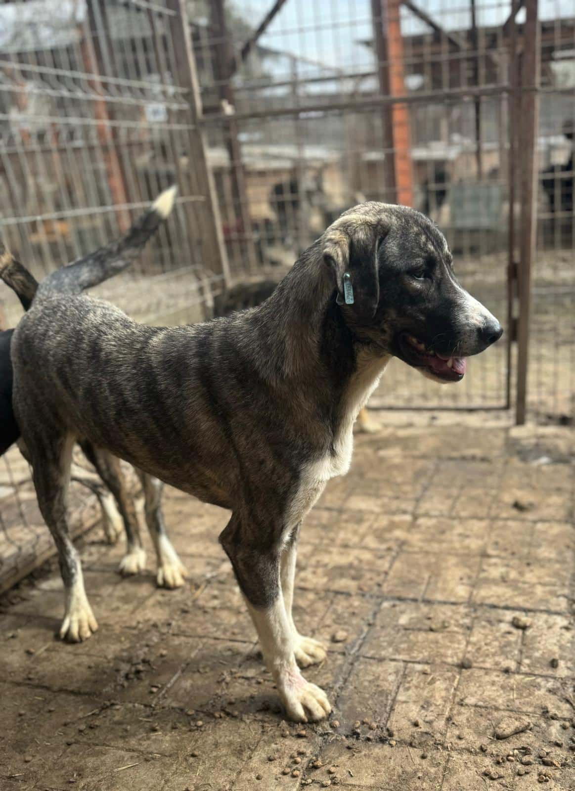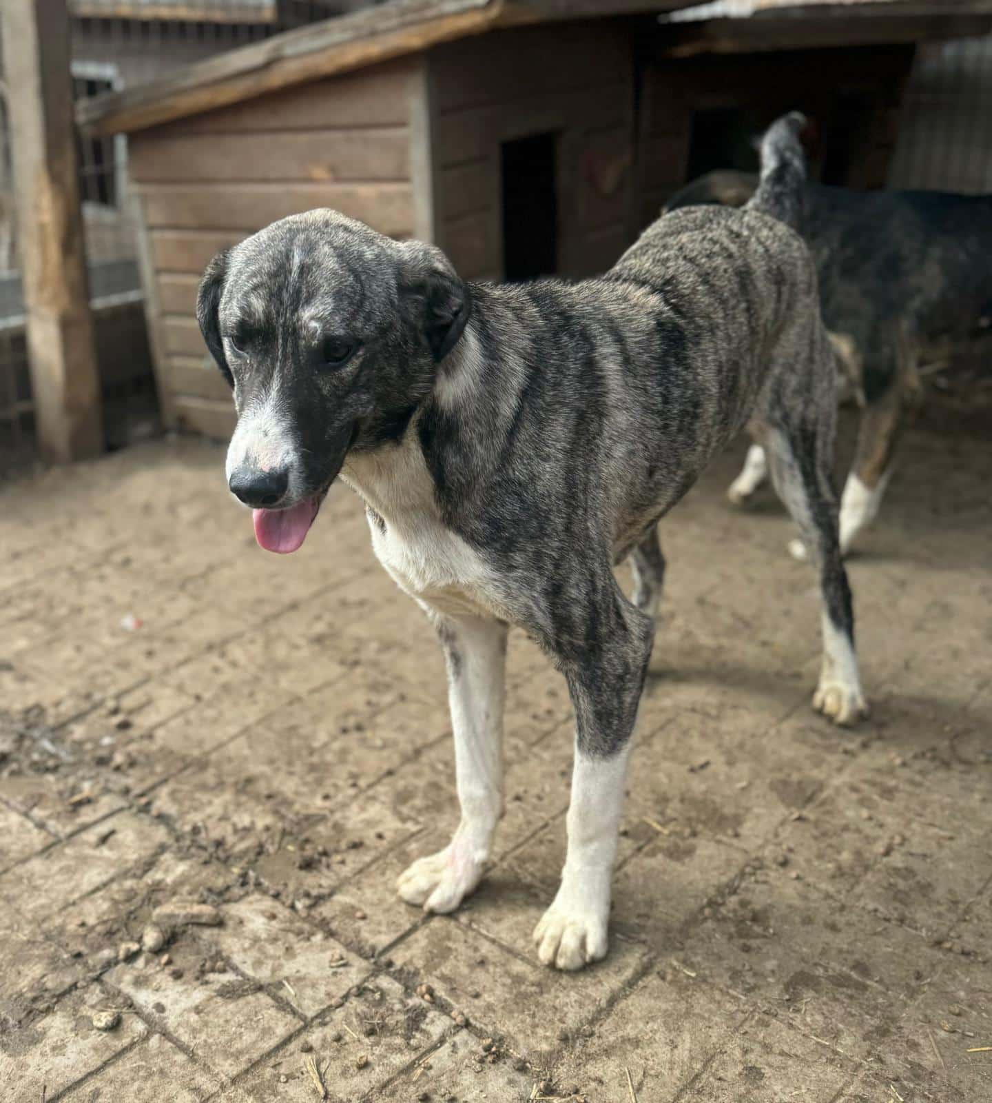 LEAN – vor 7 Monaten erfasst und jetzt wieder getroffen. Natürlich ist er gewachsen und natürlich fehlt ihm der Kontakt zum Menschen. Er versteckte sich, als wir den Kennel betraten. Aber wer kann es ihm denn verübeln? Trotzdem taute er nach kurzer Zeit auf und wir konnten ihn vorsichtig berühren und auch Leckerlie nahm er dann. Seine Kennelkollegen sind leider alle etwas ängstlich. Für ihn wäre es nun dringend Zeit, auszureisen, ein souveräner Ersthund wäre für ihn wünschenswert, ebenso Eingewöhnungszeit und Geduld. Wer zeigt LEAN die schönen Seiten des Hundelebens?