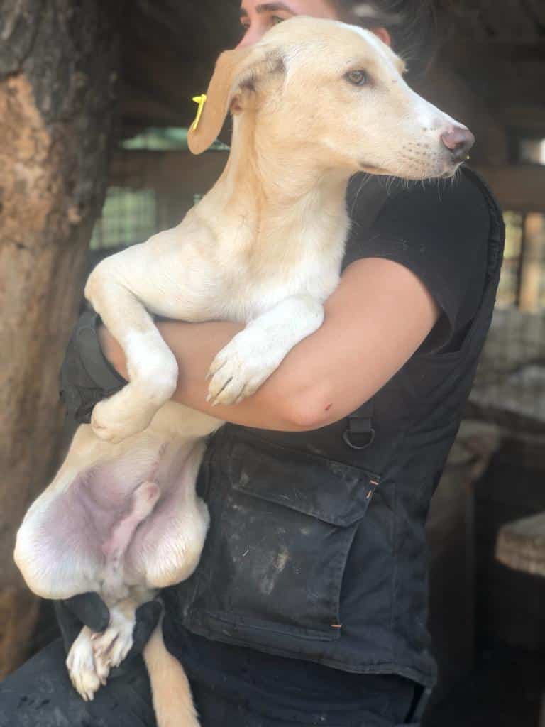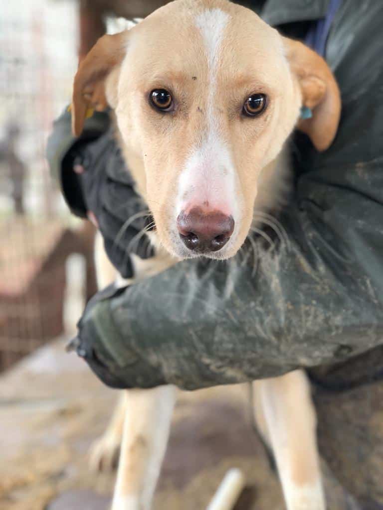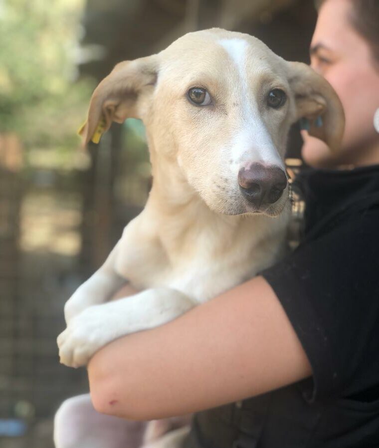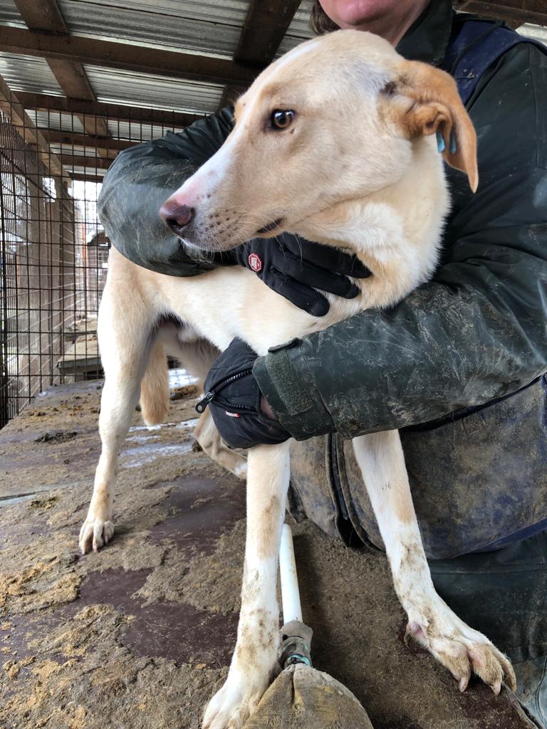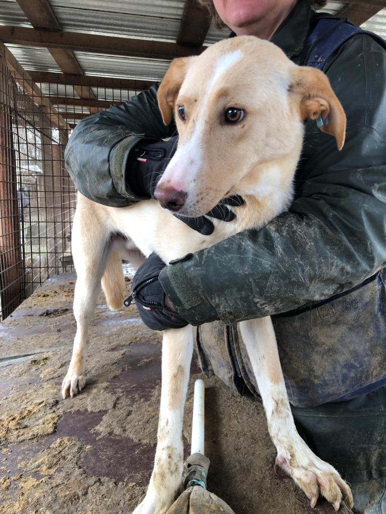 Leandro kam nicht von alleine zu uns, aber wir konnten ihn problemlos hoch nehmen und auf eine Hütte setzen. Er lässt sich sehr gut überall anfassen. Geschirr anziehen etc. wird kein Problem sein. Ein Zweithund wäre für ihn zwecks Orientierung in der ersten Zeit wichtig. Eingewöhnungszeit sollte man Leandro gönnen. Im 7er Rudel zeigte er sich sehr verträglich. Sehr netter, defensiver Hund.
