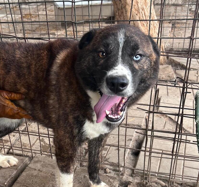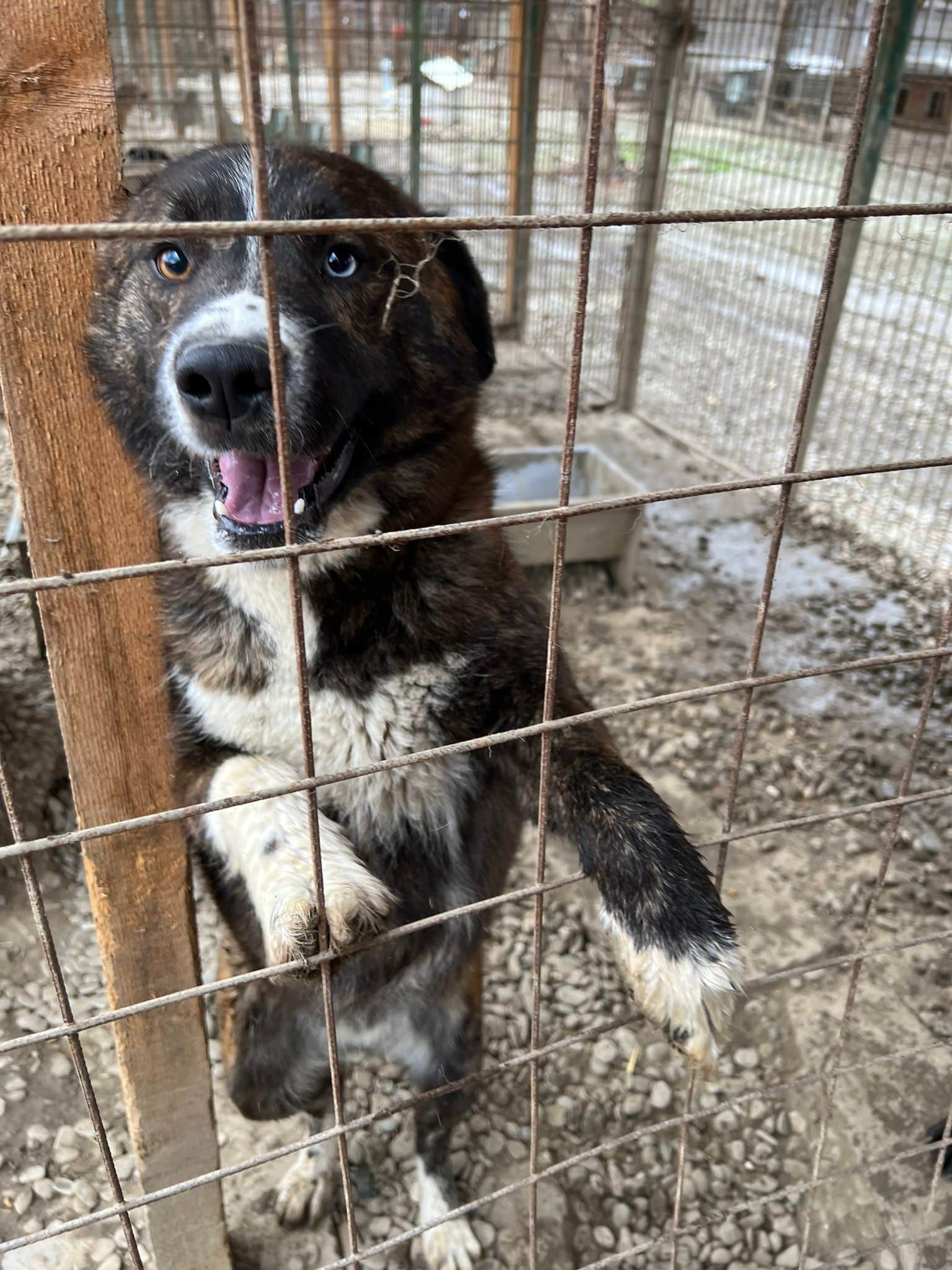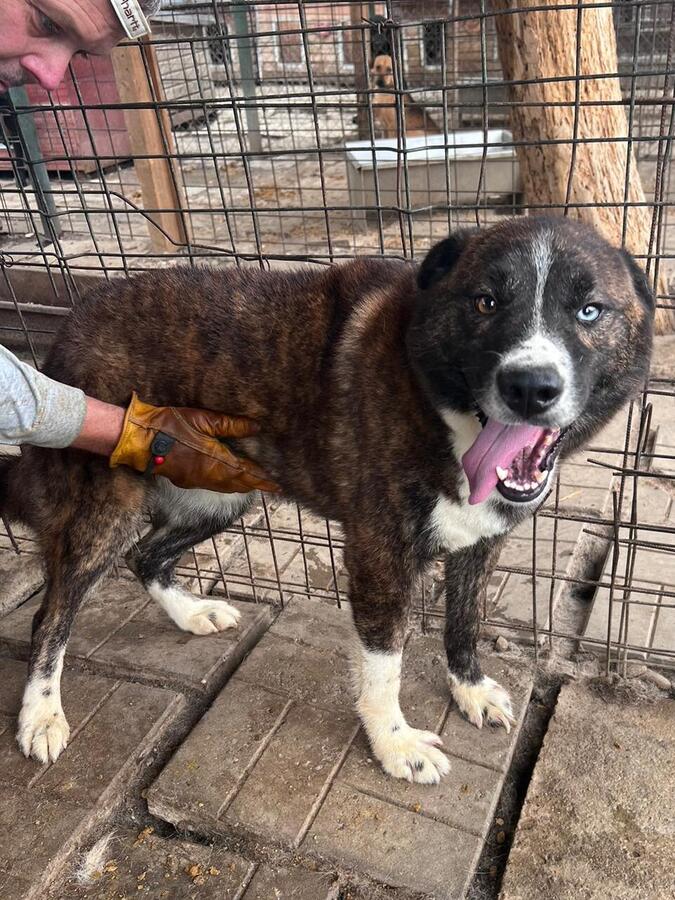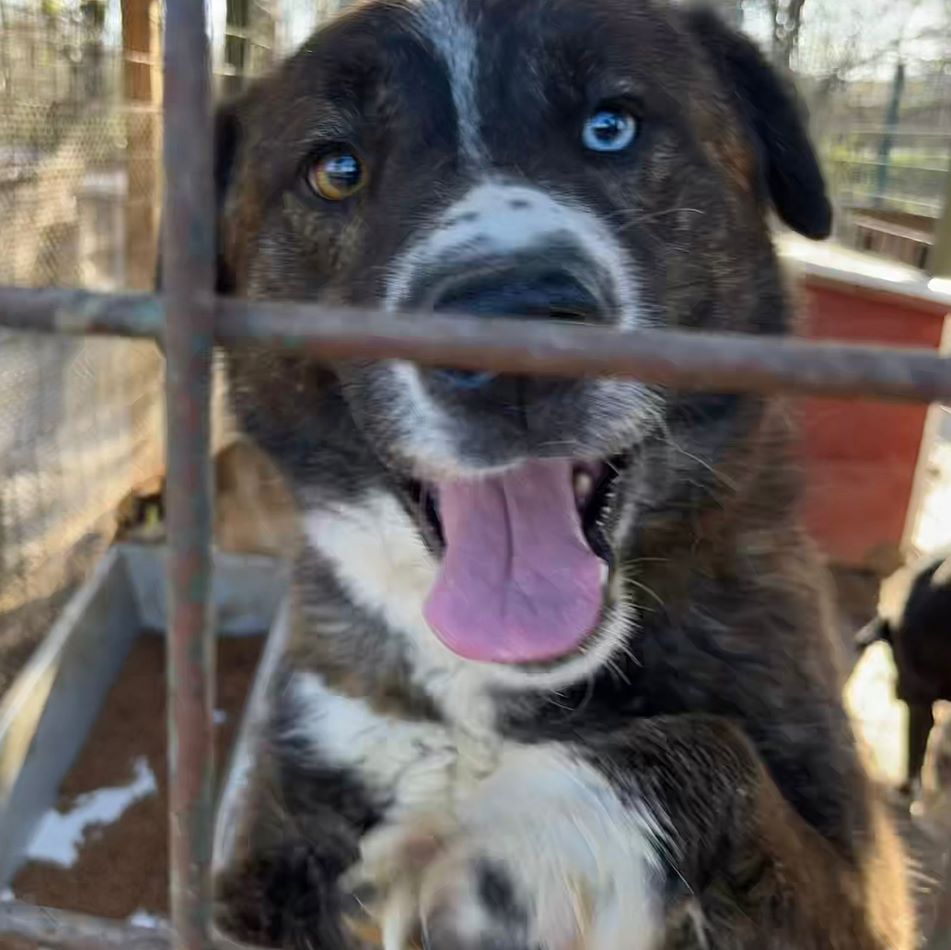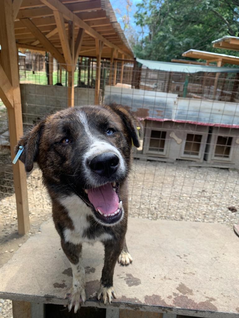 Der stattliche und wunderschöne LEANO mit dem eisblauen Auge war ganz aus dem Häuschen über unseren Besuch. Voller Freude sprang er überglücklich um uns herum und genoss die seltenen Streicheleinheiten in vollen Zügen. Seit nun fast zwei langen Jahren wartet der tolle LEANO eingesperrt im großen Shelter und ist dort völlig unausgelastet. Nur zu gern würde er über Wiesen laufen und herumtollen. Seinen Menschen wäre er dabei ein treuer Begleiter auf verschiedensten Abenteuern. LEANO ist so lebensfroh – ein richtier Gute-Laune-Hund. Er möchte mehr von der Welt sehen und noch viel lernen und so hoffen wir, dass er schon bald seine Chance erhält. Mit den anderen Hunden zeigte er sich durchgehend verträglich.