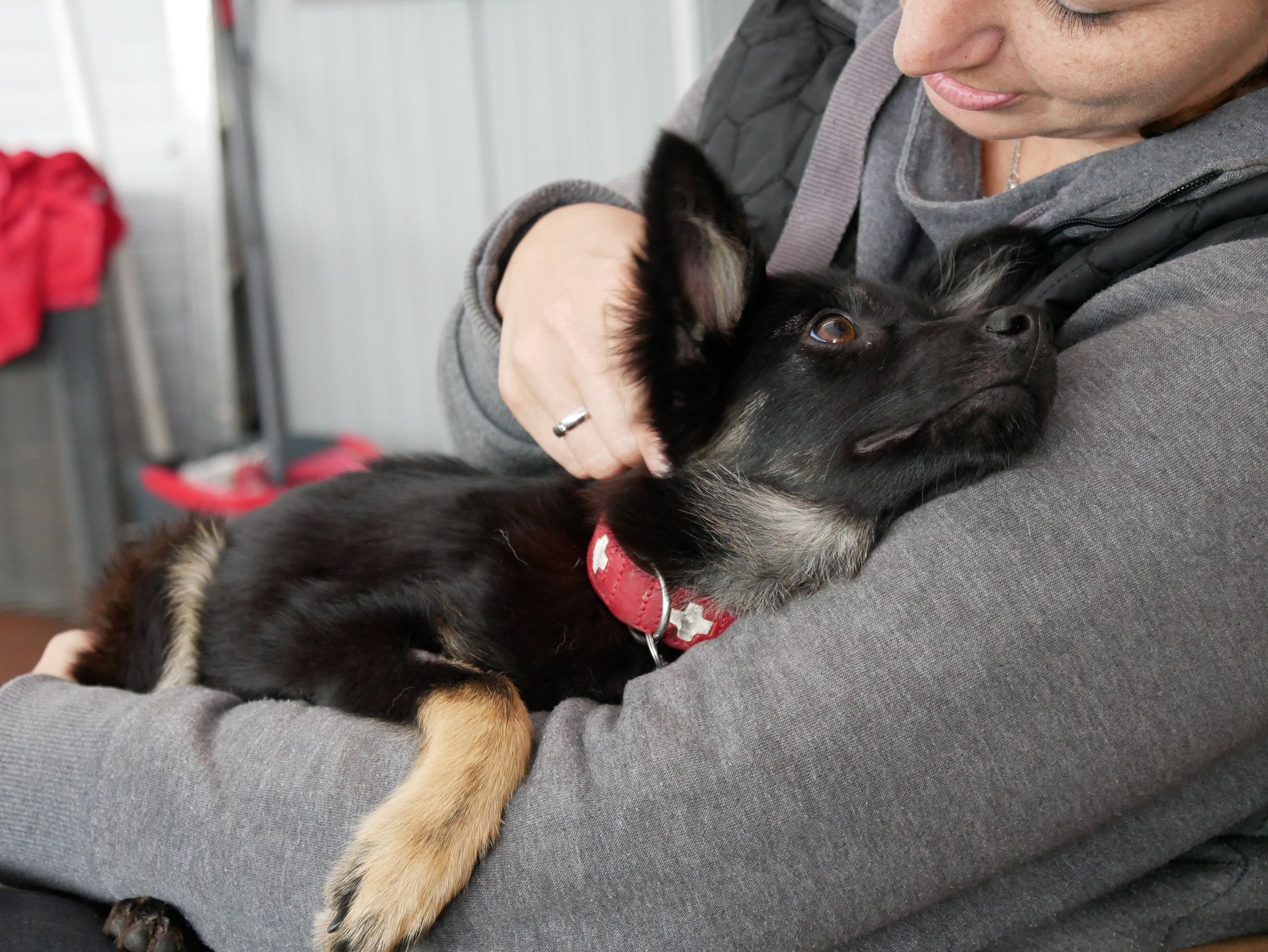 LEIKA – und es hat Zoom gemacht. Sie ist ein entzückendes „ich wickel Dich ganz schnell um meine Pfote“ Hundekind. Es ist schon süß, wenn sie eigentlich eher zögerlich ist, sich dann aber doch traut und merkt, alles ist in Ordnung und sich dann eng an einen kuschelt und die Pfötchen auf den Schoß stellt und einen ganz nah mit diesen hinreißenden Augen anschaut und die Öhrchen spitzt…. Und genau da muss man dann aber auch aufpassen. Aufpassen darauf, dass sie einen nicht zu sehr einnimmt; sie mit ihrer Niedlichkeit nicht das Ruder übernimmt.