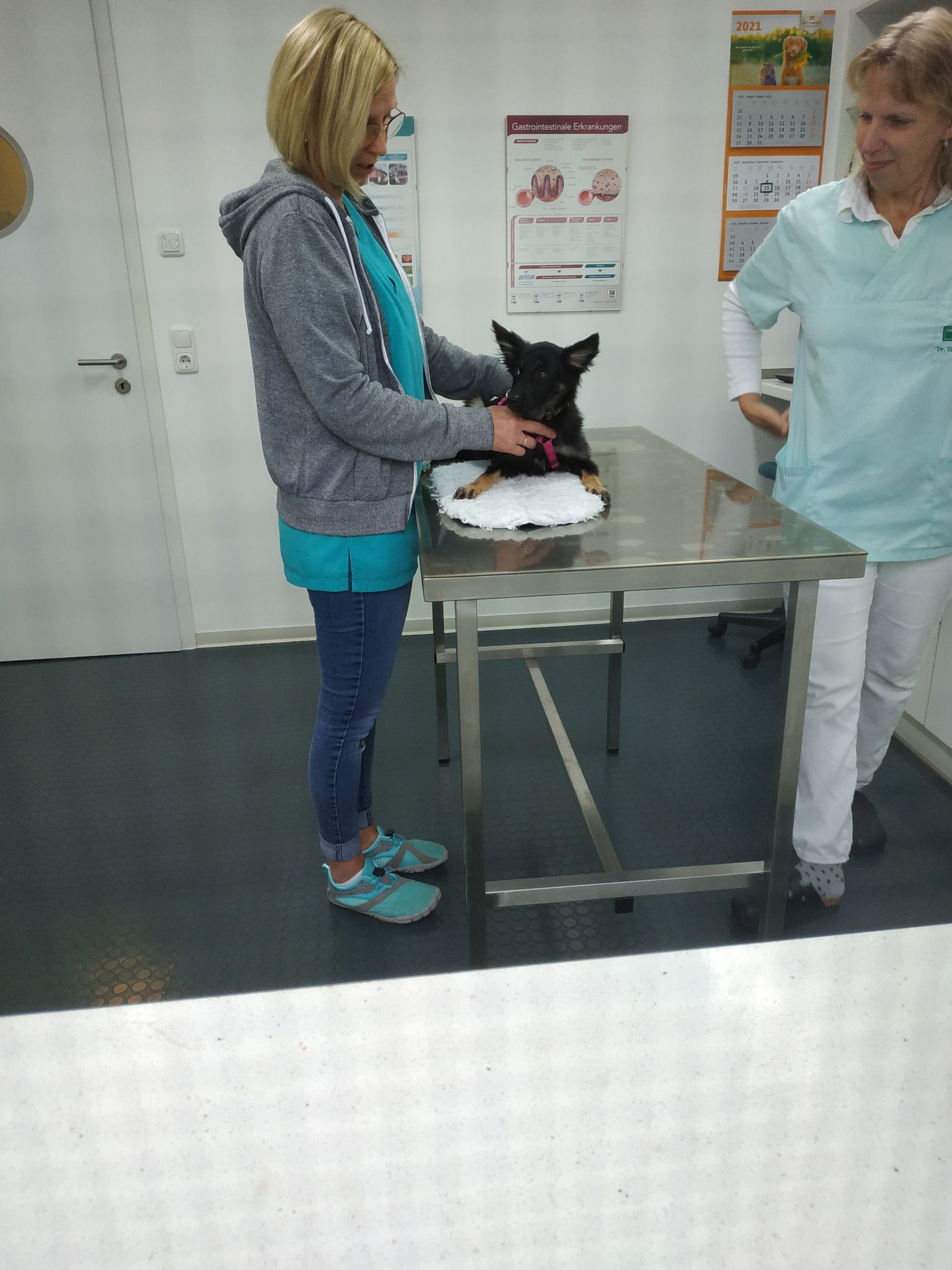Sie schläft durch und ist hier stubenrein; sie muss halt noch engmaschig hinaus.