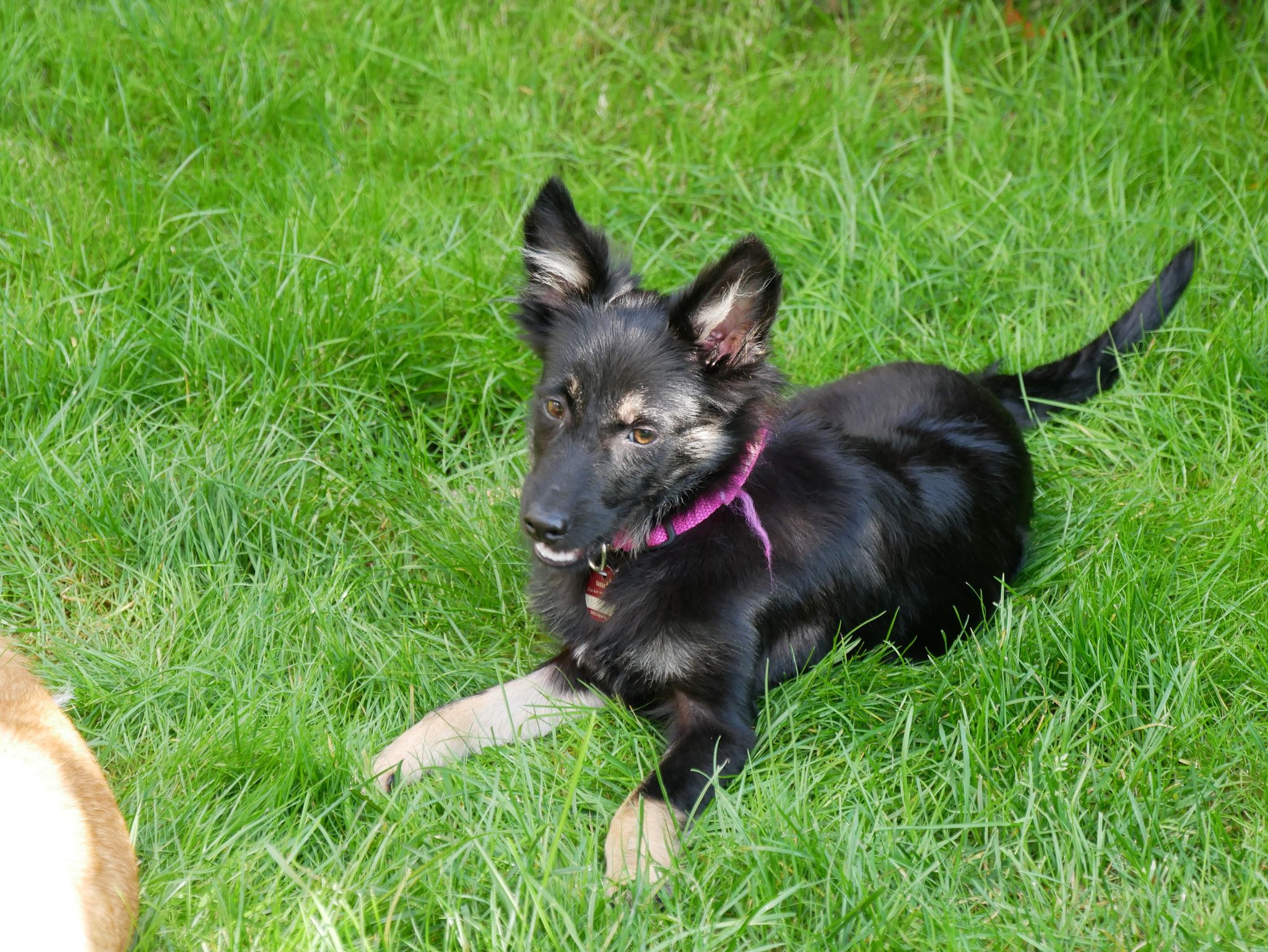 Sie liebt es, mit ihren Gefährtinnen durch den Garten zu tollen, Quatsch zu machen oder einfach faul in der Sonne zu liegen. Im Haus ist sie ruhig, legt sich gut ab und lässt einen ungestört Büroarbeiten erledigen.