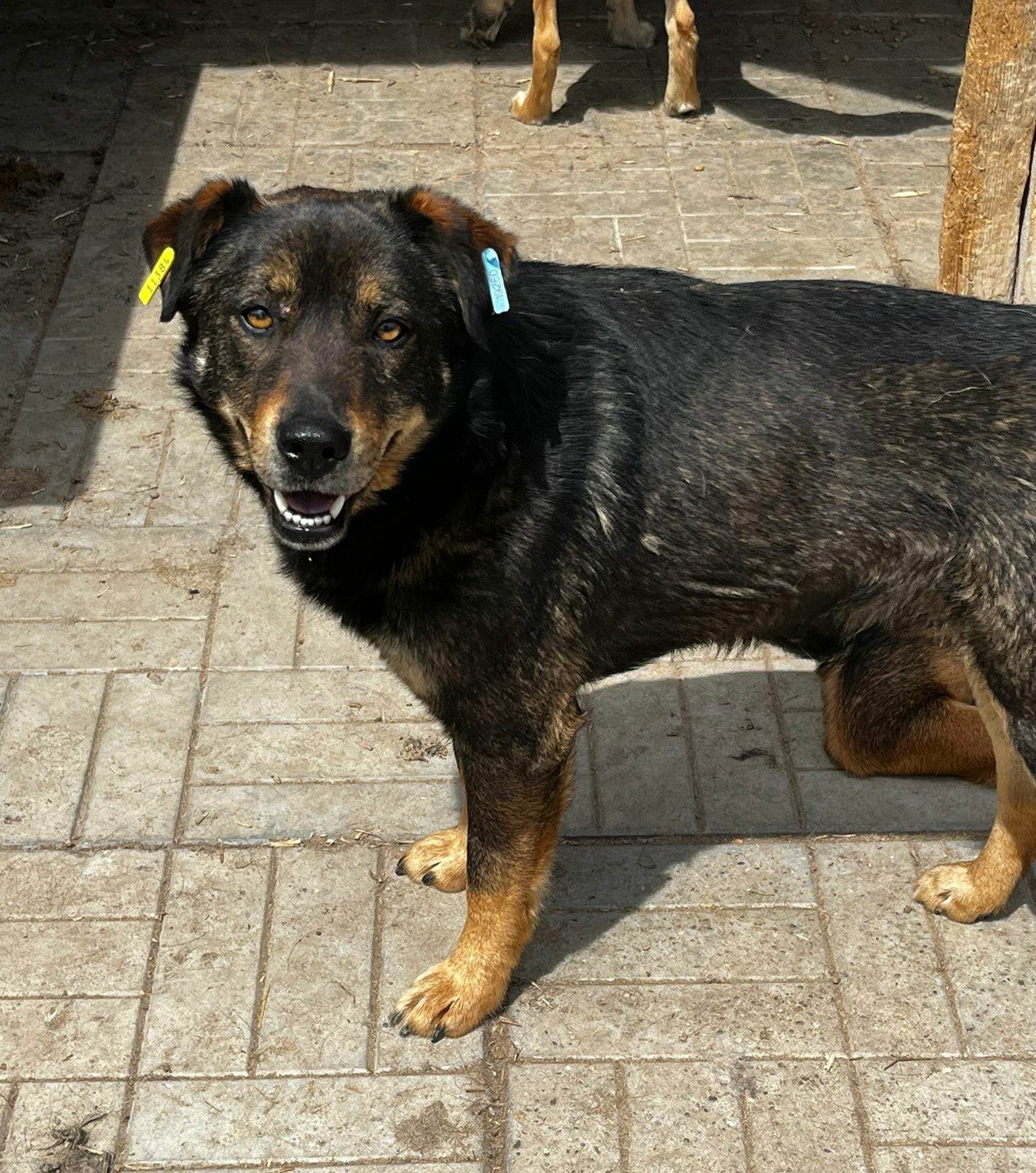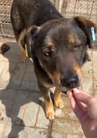 LEINES ist nach wie vor ein interessierter Rüde. Den agileren Hunden lässt er den Vortritt und beobachtet alles ganz genau aus der 2. Reihe. Sein Mut reicht um Leckerli aus der Hand zu nehmen, aber für streicheln lassen fehlt er noch. In einer ruhigeren und verständnisvollen Umgebung würde LEINES sicher gute Fortschritte machen.