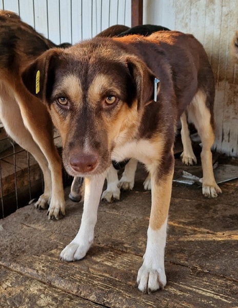Die hübsche LENA schien uns bei unserem Besuch wohlgesonnen zuzulächeln und gehört zu den mutigeren in ihrem Kennel. Sie kam für uns aus ihrer Hütte heraus, um sich die angebotenen Leckerchen aus der Hand abzuholen. Die Berührung in der Hütte ist ihr aufgrund des fehlenden Kontakts fremd und ungewohnt, man könnte ihr mit etwas Übung aber bestimmt zum Genuss der Zuwendung verhelfen.