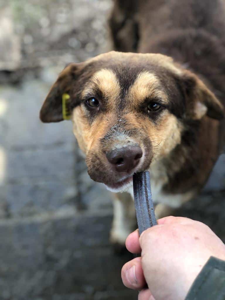 LENA ist eine etwas zutrauliche Hundemama. Sie ist vorsichtig anfassbar, da sie es aber nicht einschätzen konnten, was wir von ihr wollten, zog sie es vor zu gehen. Sie würde nach ein paar Tagen sicherlich auftauen. Leckerchen nimmt sie bereits ohne Probleme.