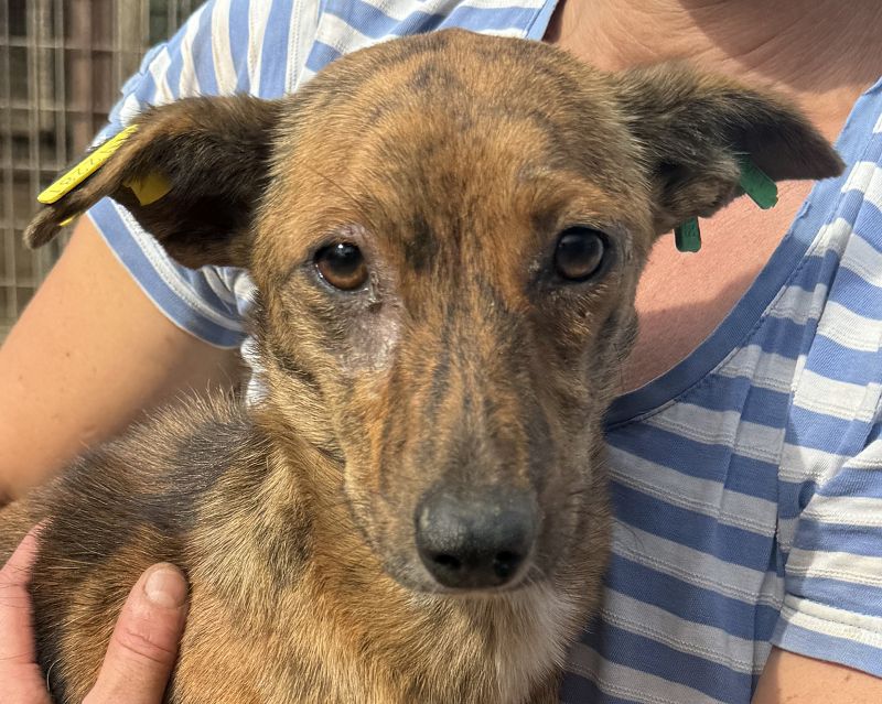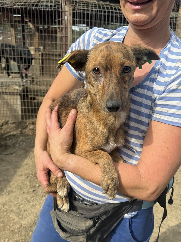 Lenaa hatte jede Menge Glück, dass wir sie überhaupt im Zwinger entdeckt haben, denn sie lag mit 2 weiteren Hunden in einer der Hütten und war kaum zu erkennen. Da ihr Fell anders aussah als das der anderen beiden Hunde, wagten wir einen genaueren Blick in die Hütte. Lena ist eine ganz zarte, kleine Hündin. Zudem ist sie leider aktuell zu dünn. Der Stress im Tierheim setzt ihr sehr zu, so wird sie immer dünner und auch Hautprobleme zeigen sich langsam auf Grund der harten Bedingungen vor Ort. Wir konnten sie problemlos aus der Hütte heben und schnell entspannte Lena beim Kraulen auf dem Arm. Auch auf dem Schoß blieb sie ganz ruhig, vielleicht auch weil sie einen Moment keine Angst haben musste.