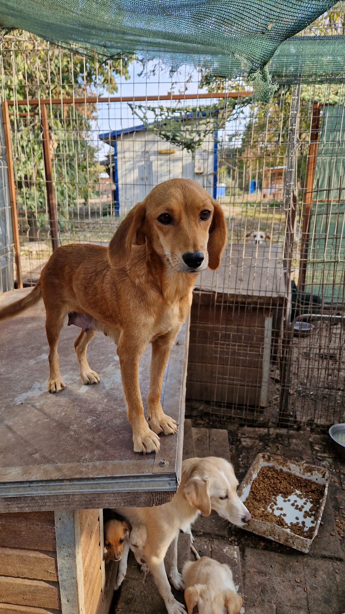 LENIE ist eine kleine, liebe und absolut nette zarte Hündin, die mit ihrem Welpen nach Bucov gekommen ist. Sie sitzt da jetzt auf einem Hüttendach, da der Kennel völlig überfüllt ist, und freute sich so sehr, dass wir etwas Zeit hatten. LENIE ist beim Streicheln fast eingeschlafen, sie ist einfach nur fertig von diesem Stress dort.