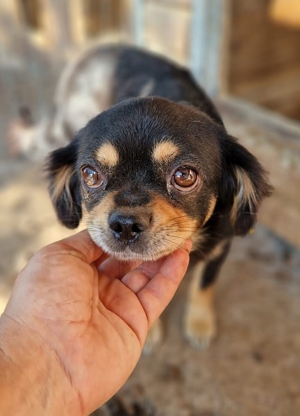 LENIE sitzt mit vielen kleinen Hunden in einem Kennel und versucht da tapfer durchzuhalten. Sicher hatte sie mal ein Zuhause. Wir konnten LENIE problemlos streicheln, sie wird nur etwas unsicher, wenn man sich ihr hektisch nähert.