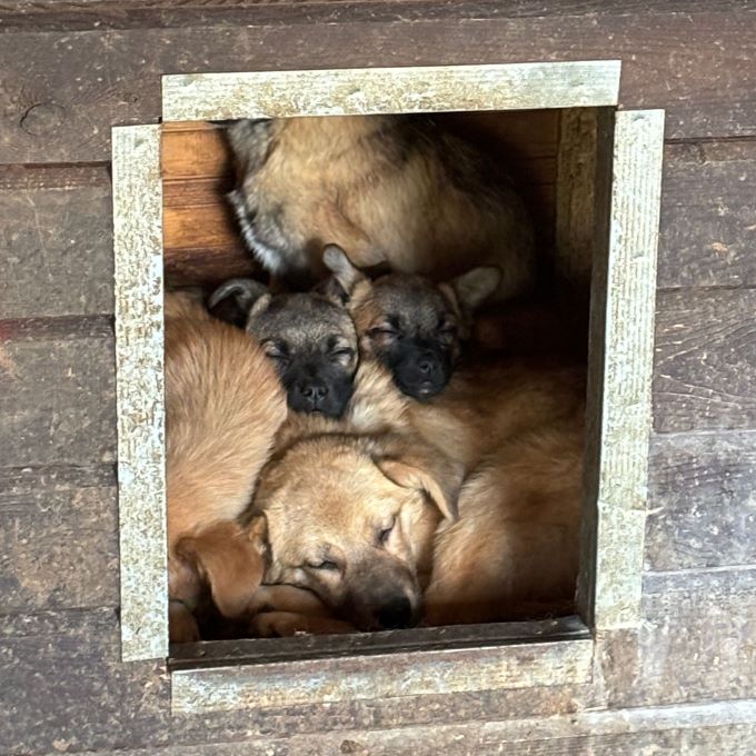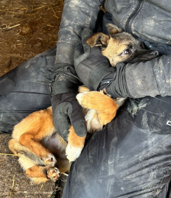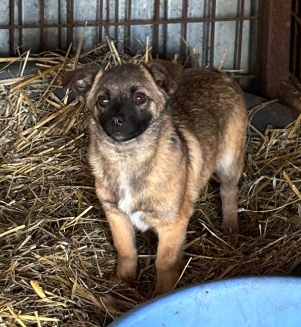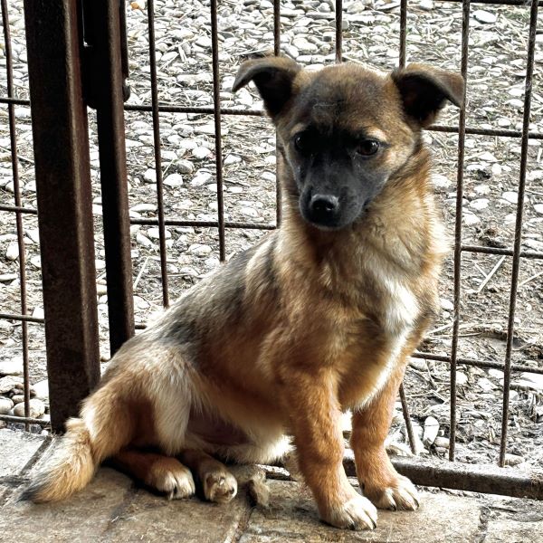 Dieser kleine Kerl ist eines von drei sehr ängstlichen Geschwisterchen, welche sich anscheinend nur gemeinsam sicher fühlen und sich nicht anders zu helfen wissen, als uns durch vehementes Schnappen fernhalten zu wollen… Unser Besuch gruselte den zarten Hundemann sehr – was muss ihm in seinem noch so jungen Leben bereits widerfahren sein, dass er sich so vor uns fürchtet..? LENIO blieb stets auf Abstand und beobachtete skeptisch unser Tun. Als wir ihn in der Hütte bedrängten, bekamen wir ihn letztendlich doch aus seinem sicheren Versteck – Jedoch nicht ohne Gegenwehr. LENIO schnappte wild um sich und als die kleinen Zähnchen im Handgelenk der Volontärin steckten, die sich dann, um Ruhe auszustrahlen, im Kennel auf den Boden setzte, beruhigte sich das panisch klopfende Herzchen etwas…