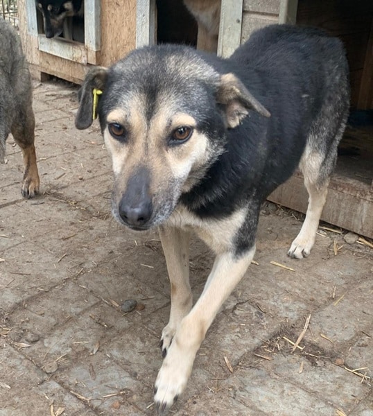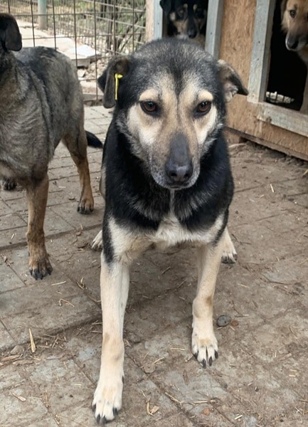 Der süße Lenny war interessiert an uns und holte sich neugierig Leckerchen aus der Hand ab. Dabei konnten wir ihn leicht an der Schnauze berühren. Für mehr fehlte ihm derzeit noch der Mut. Da er sich aber grundsätzlich interessiert am Kontakt mit dem Menschen und sehr neugierig zeigt, würde er mit etwas Geduld bestimmt auftauen. In seinem gemischten Kennel zeigte Lenny sich prima verträglich.
