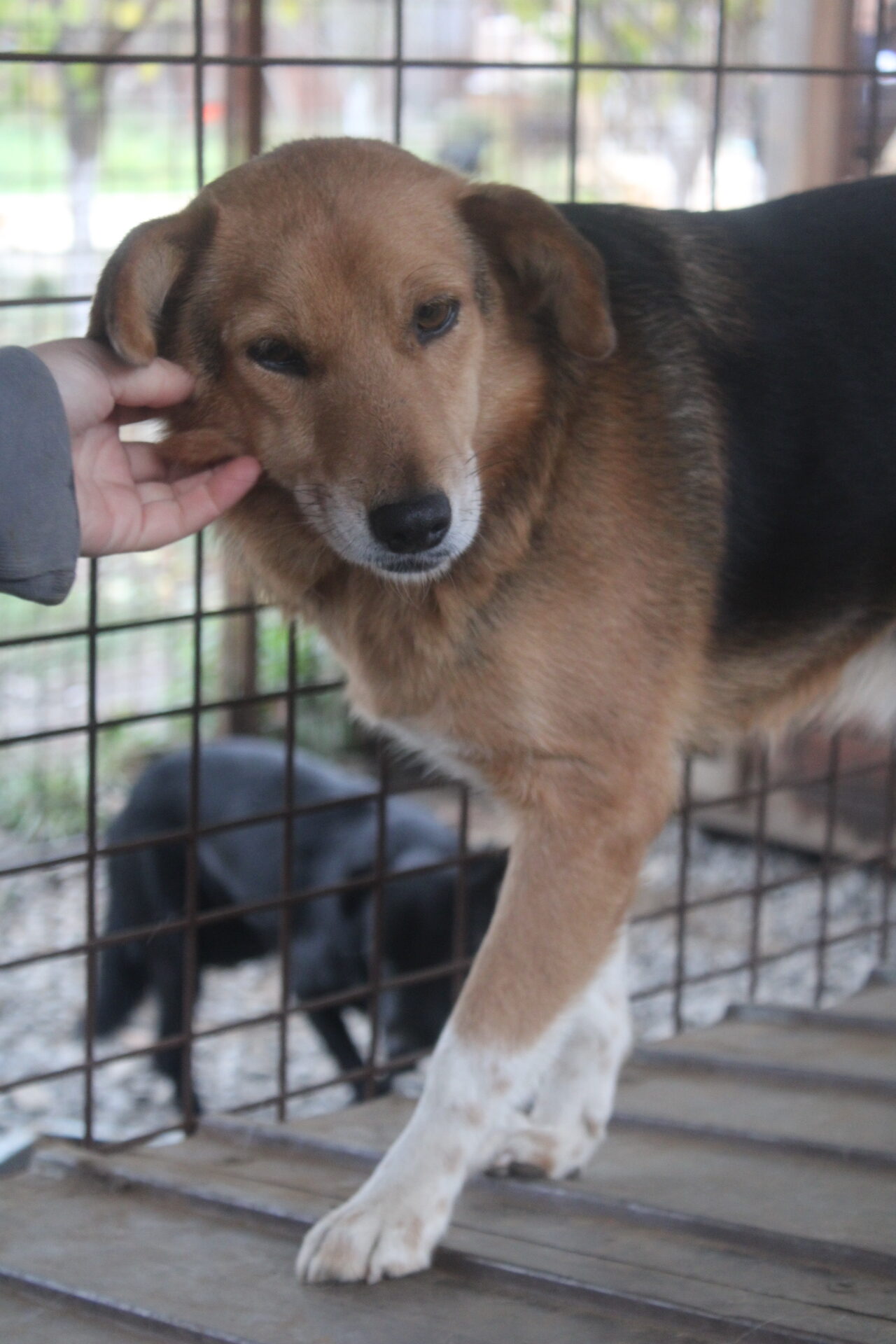 Die hübsche LEONA ist nach wie vor eine ruhige Hündin, die uns etwas zurückhaltend, aber freundlich und aufgeschlossen in ihrem Kennel begrüßte. Dass die Streicheleinheiten für sie ungewohnt waren, merkte man ihr an. So richtig genießen konnte sie sie nicht, blieb dabei aber ruhig.
