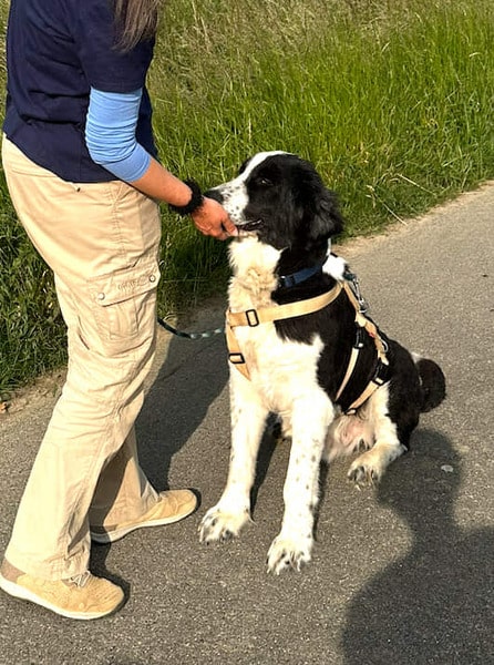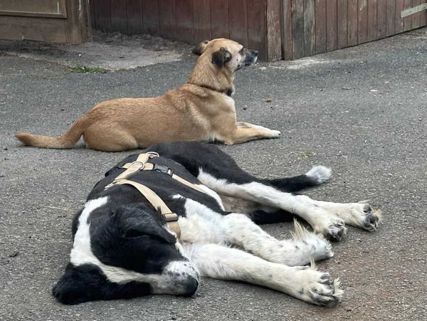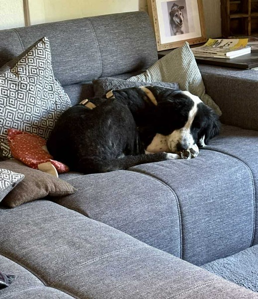 Leonidas lebt seit Mai 2025 auf seiner Pflegestelle. Dort zeigt er sich von Anfang an zugewandt, freundlich, anhänglich, sozialverträglich, stubenrein, gelehrig, aufmerksam, überaus verschmust und in stetem Bemühen alles richtig zu machen. Er ist sehr sensibel und fein, nimmt Stimmungen schnell auf und passt sich dementsprechend an. Er ist leinenführig und geht, bei schönem Wetter, sehr gerne spazieren, frei nach dem Motto: „lieber gemütlich, dafür öfter.“ Er tobt und spielt dafür durchaus gerne mit seinen Artgenossen, ist aber insgesamt eher der chillige Typ, der auch mal den ganzen Tag auf dem Sofa verschlafen kann. Leo fährt gut auf kleineren Touren im Auto mit. Längere Autofahrten stressen ihn noch sehr und müssten langsam geübt werden. Er zeigt keinen übertriebenen Wach- und Schutztrieb, sondern begrüßt Jeden zurückhaltend, aber immer freundlich. Ist sich also weder seiner Größe, noch seiner Ahnen bewusst….