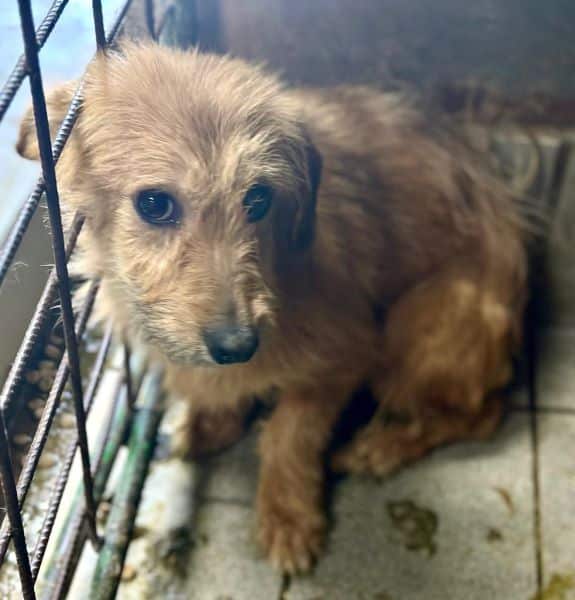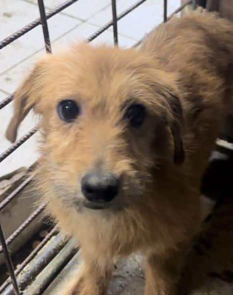 Sie saß mit vielen Welpen in einem VetKennel. Sie wirkte sehr verträglich, aber bei unserem Besuch hatte ihre Panik durchgehend die Oberhand.