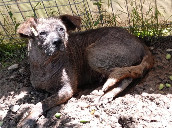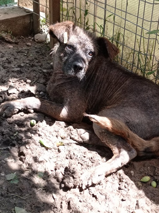 LEONORA’s rechtes Vorderbein war völlig zerstört und musste amputiert werden. Zudem hat sie extreme Hautprobleme, deren Behandlung leider noch nicht angeschlagen hat. Die Seniorin durfte nun von den Vetkennels in Bucov ins Sanctuary umziehen, wo sie sich frei im Gelände bewegen kann. Sie steht weiter unter tierärztlicher Beobachtung und Behandlung, sollte das Shelter aber dringend verlassen.