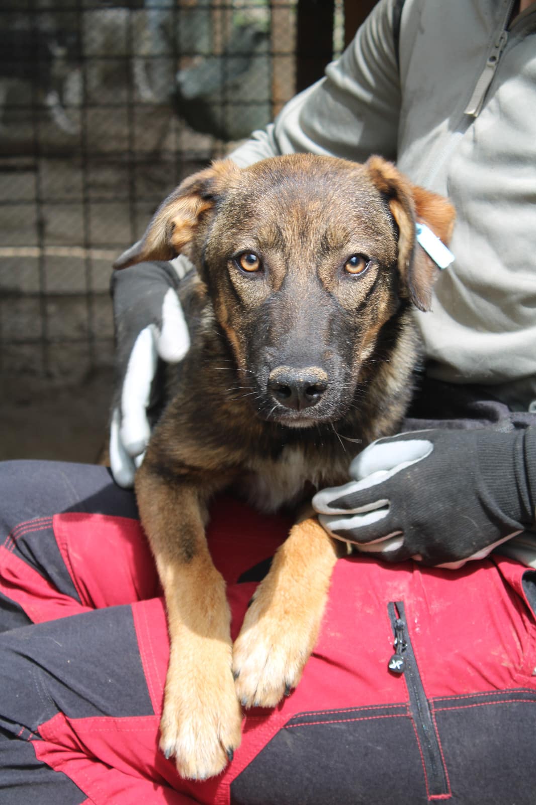 Seit mindestens zwei Jahren sitzt dieser menschenbezogene Rüde nun hinter Gittern. Er konnte es kaum erwarten, dass wir zu ihm in den Kennel kamen. Menschen, Nähe, Freundlichkeit, er braucht es so sehr. Die wenigen Momente, wenn Volontäre sich zu ihm hin verirren sind viel zu wenig für ihn. Wie ein kleiner Flummi hüpft er und bringt seine Freude zum Ausdruck. In einem eigenen Zuhause, wo er sich seiner Menschen sicher sein kann, wo er seine überquillende Freude und Liebe für den Menschen kanalisieren kann, wird er ruhiger und bestimmt ein toller Überallhin – Begleiter werden können. Er wäre so gerne jetzt schon mitgekommen. Wer gibt ihm bitte jetzt seine Chance?