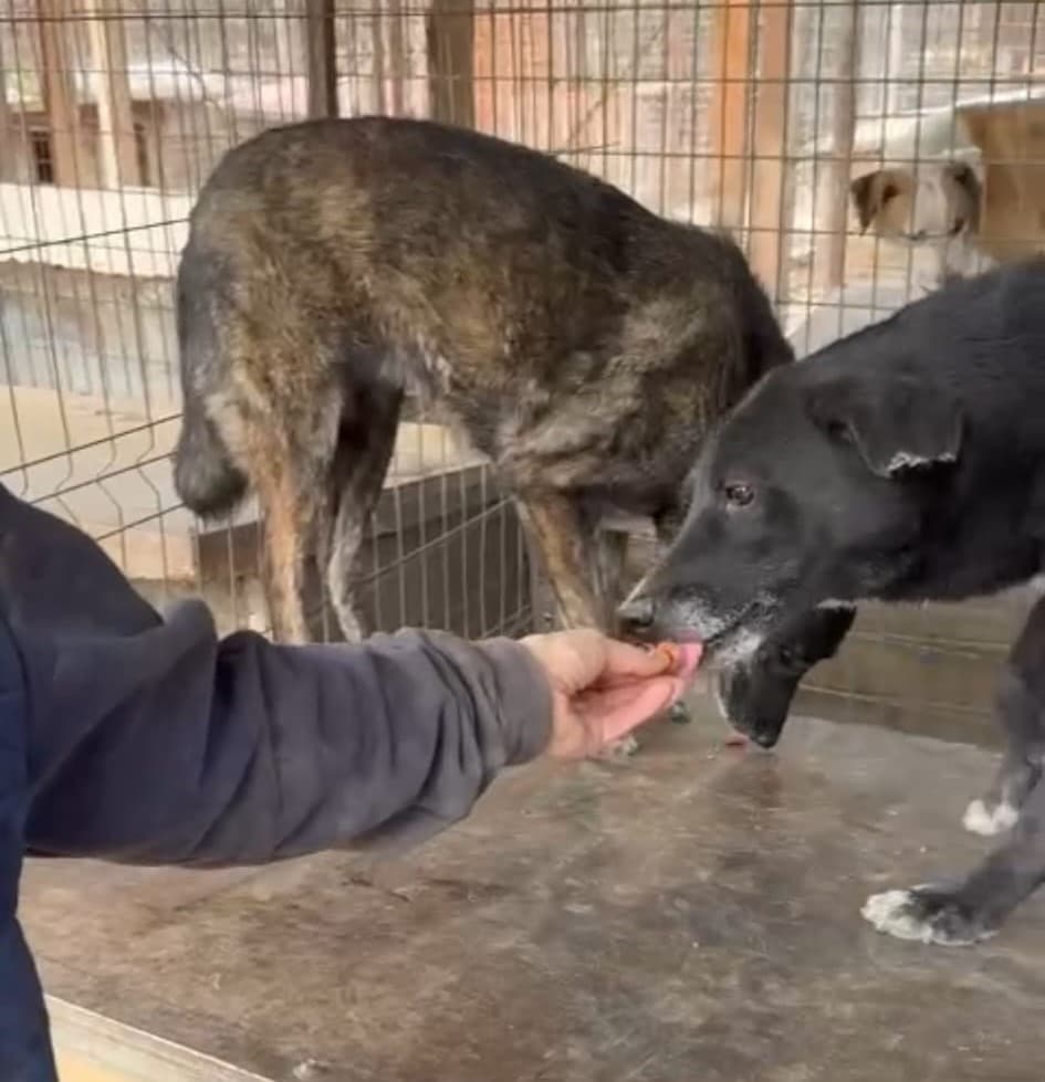 LESTER ist nach wie vor etwas zurückhaltend und skeptisch uns Menschen gegenüber. Trotzdem nahm er all seinen Mut auf und nahm die mitgebrachten Leckerchen vom Boden auf. Dabei konnten wir ihn vorsichtig am Schnäuzchen berühren, was ihm aber noch etwas unheimlich erschien. Mit etwas Geduld und Zeit würde der hübsche Rüde bestimmt weiter auftauen.