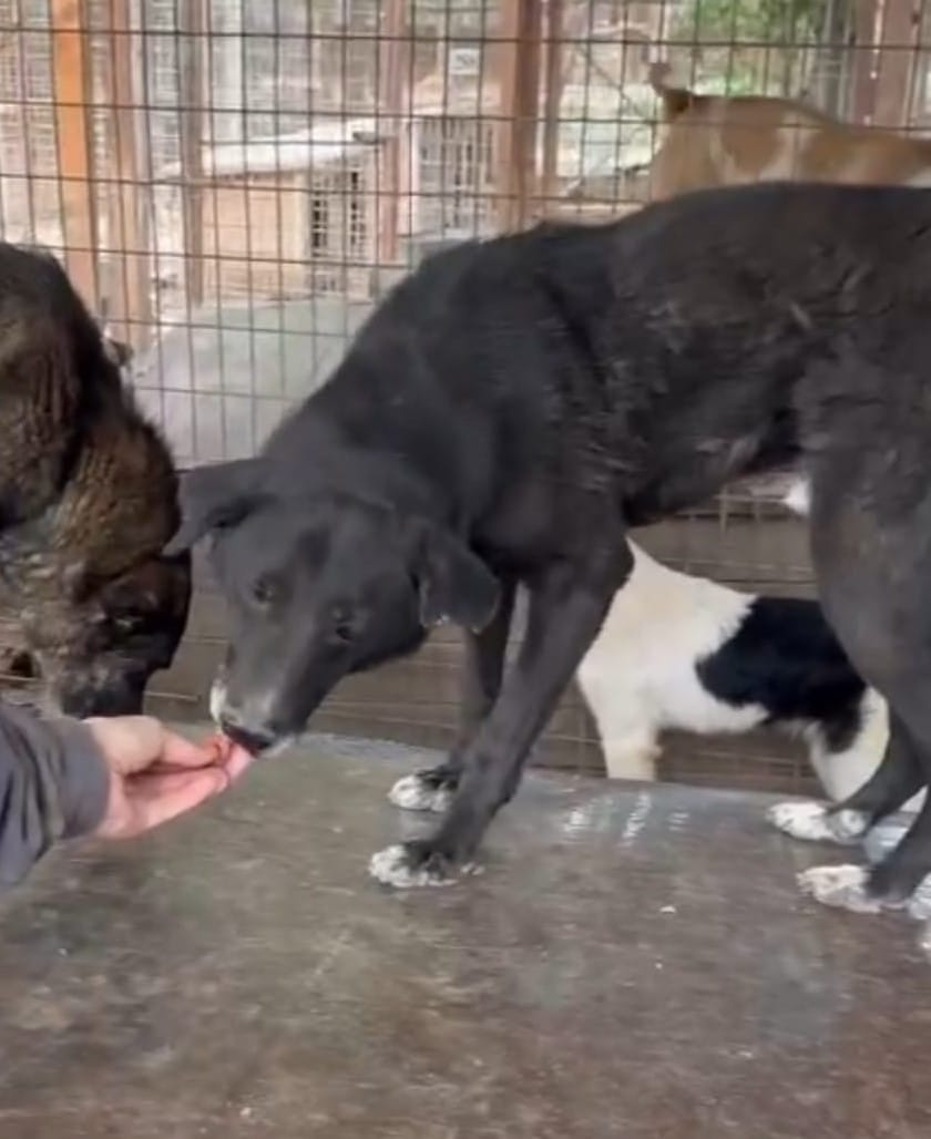 Lester zeigte sich leider scheu. Wir kamen nicht an ihn dran. Leckerchen nahm er auch nicht. Mit seiner Zwingerfreundin versteht er sich gut.