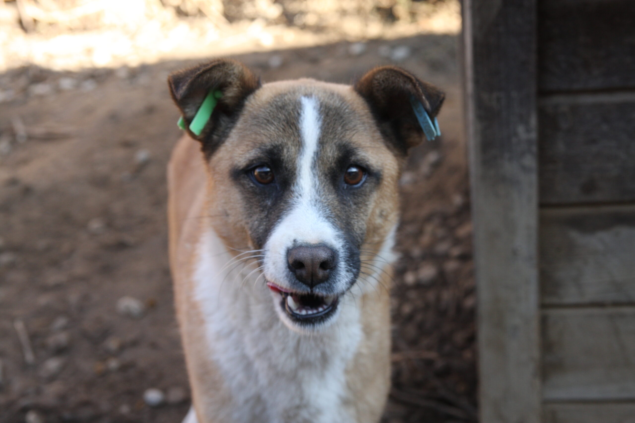 Die zurückhaltende LETY beobachtete uns neugierig aus sicherem Abstand. Sie nahm aber nach kurzer Zeit Leckerli aus der Hand, nur zum Streicheln fehlte ihr noch ein bisschen Mut.