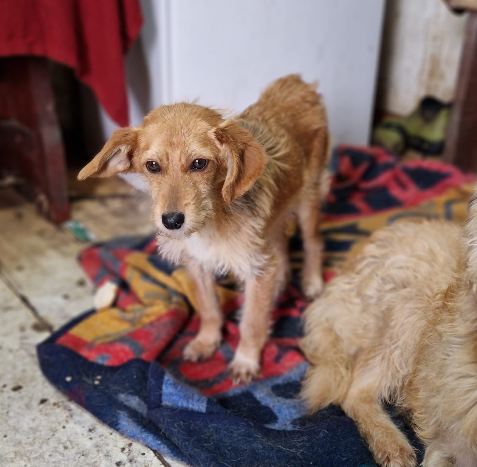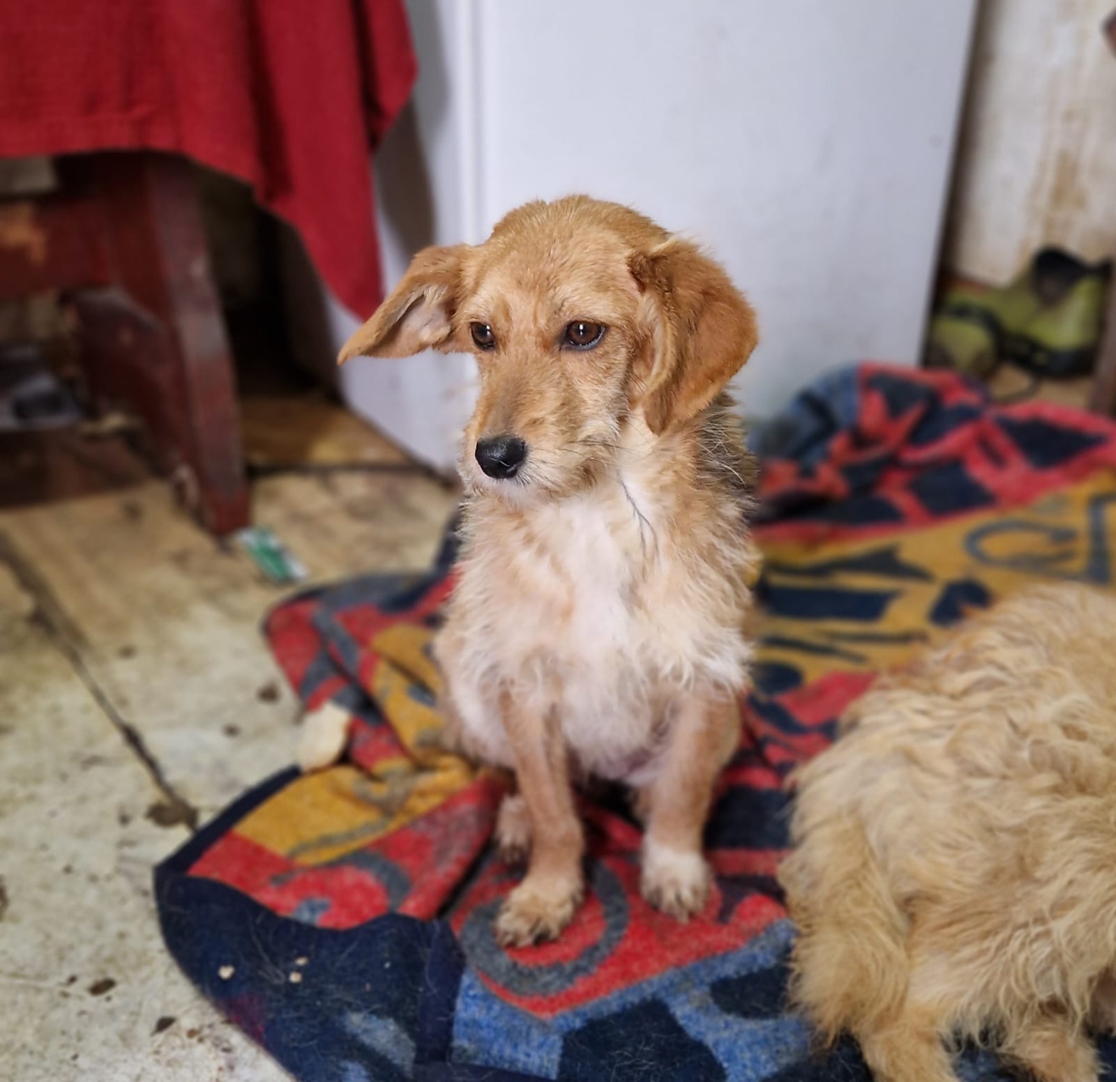 LEVCHEN saß schüchtern und überfordert in einer Ecke ihres Zimmers im Haus von Campina. Sie ist eine junge, freundliche Hündin, die etwas schüchtern Menschen gegenüber ist. Sie versuchte aber nicht zu flüchten, als wir zu ihr gingen, sondern blieb ganz lieb sitzen und ließ sich auch streicheln.