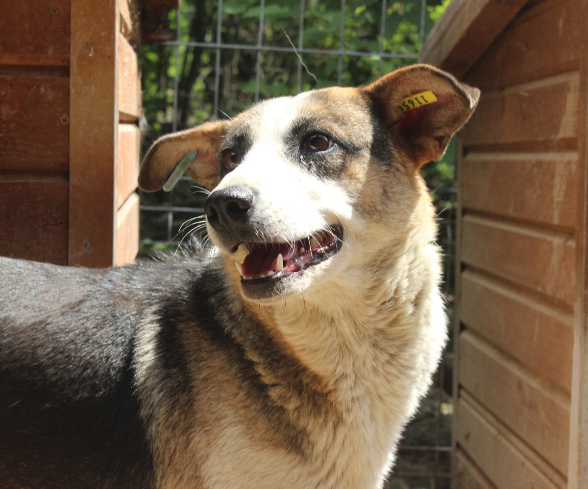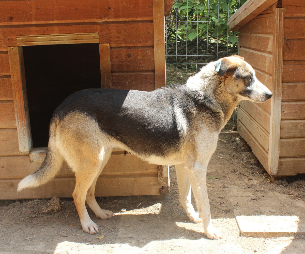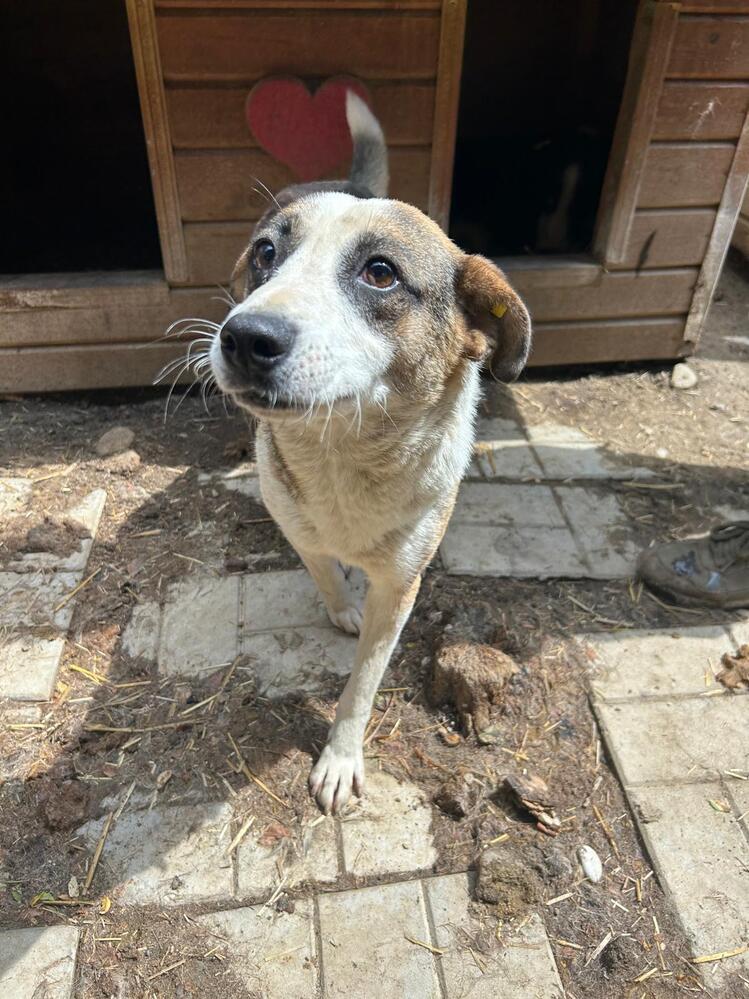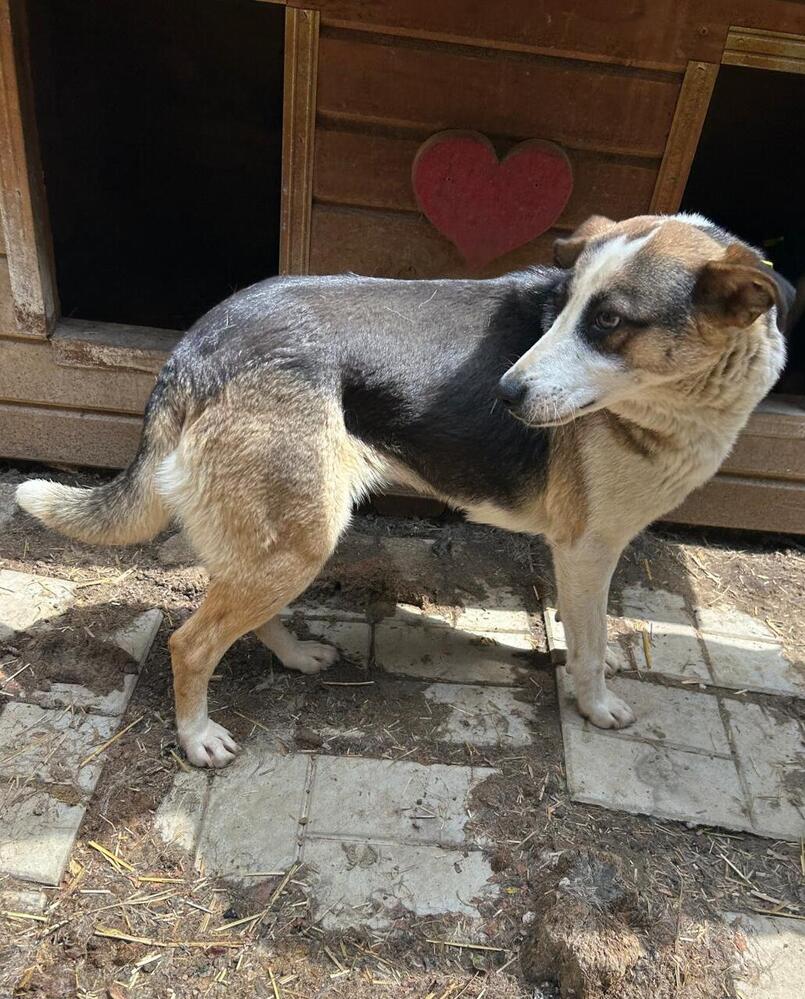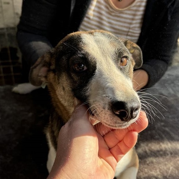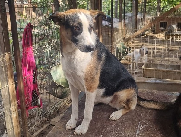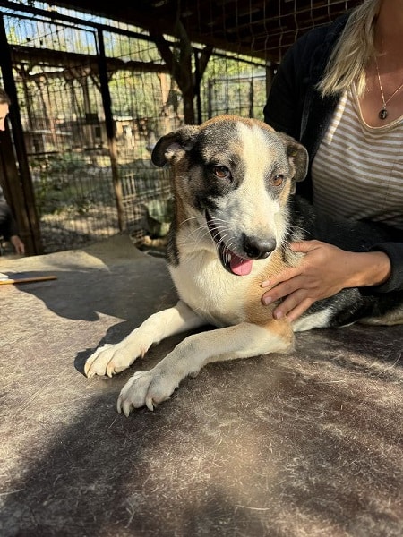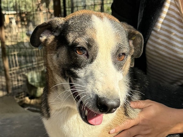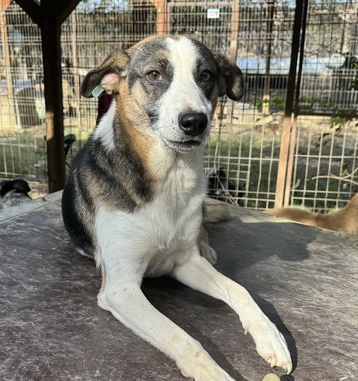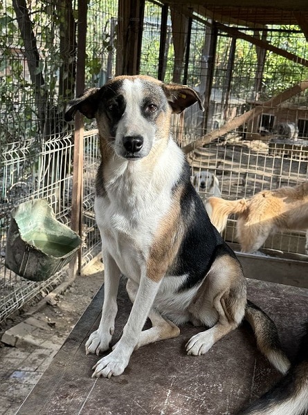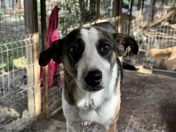 Die mittelgroße, junge Hündin Levi, sitzt schon länger in einem gemischten Zwinger mit acht weiteren Hunden. Trotz wenig Menschenkontakt hat sie keinerlei Ängste entwickelt. Sie hat uns sofort freudig begrüßt und ist auf das Hüttendach gesprungen, um möglichst viel Aufmerksamkeit zu bekommen. Sie ist eine total verschmuste hübsche, tricolor Maus, die es in vollen Zügen genossen hat sich den Bauch kraulen zu lassen. Man hat ihre Freude darüber in ihren Augen strahlen gesehen und sie suchte immer wieder aktiv unsere Nähe. Während des Streichelns kam sie immer mehr zur Ruhe. Sie ist mit allen anderen Hunden verträglich und ging Konflikten aus dem Weg. Hoffentlich findet diese sehr aufgeschlossene Hündin schnell ein warmes Körbchen, damit das Bauchkraulen für sie keine Seltenheit bleibt.