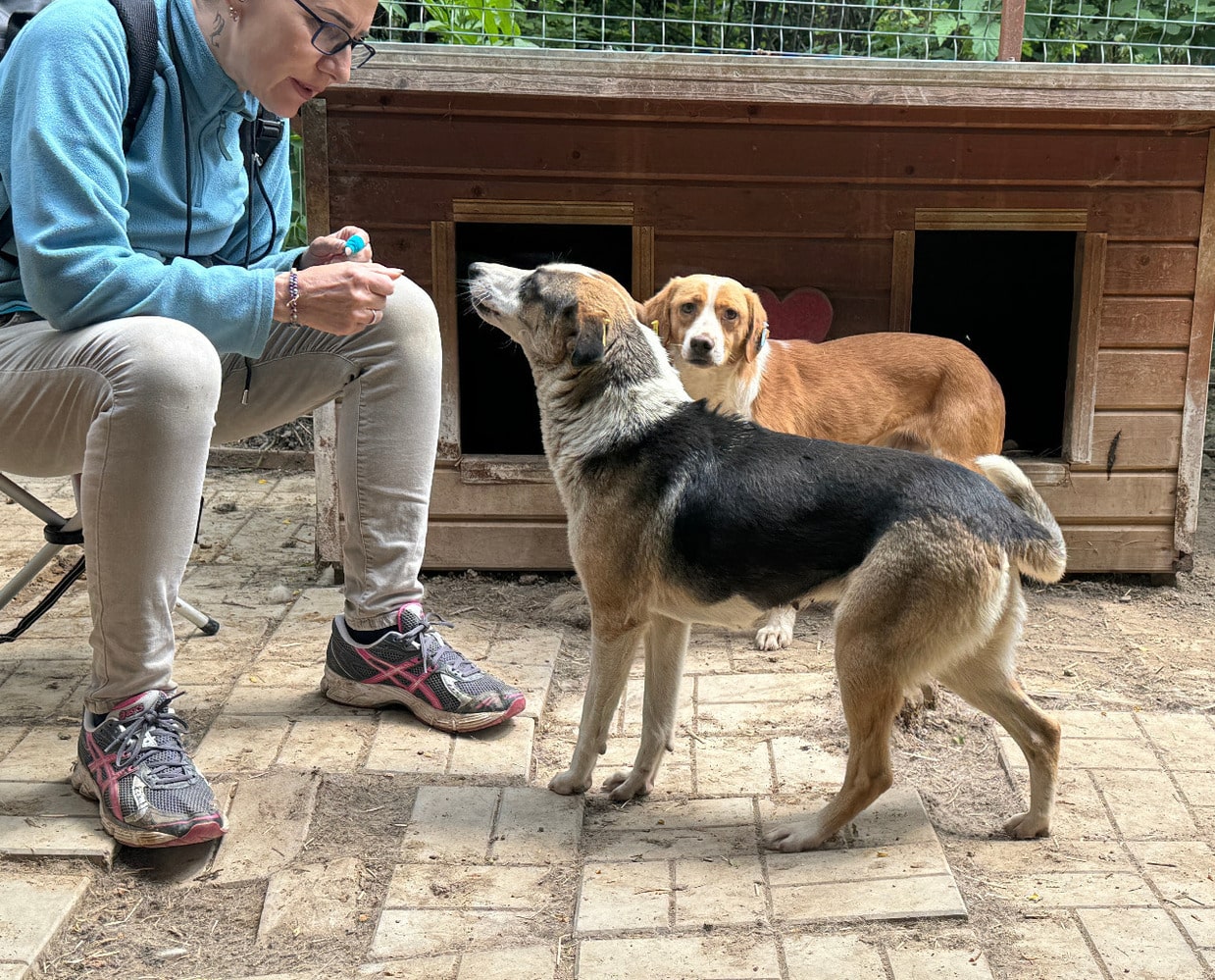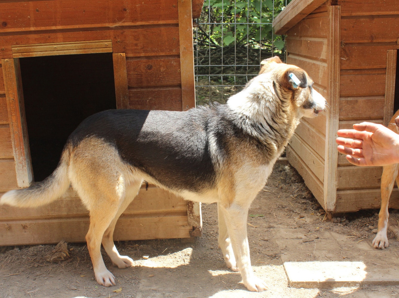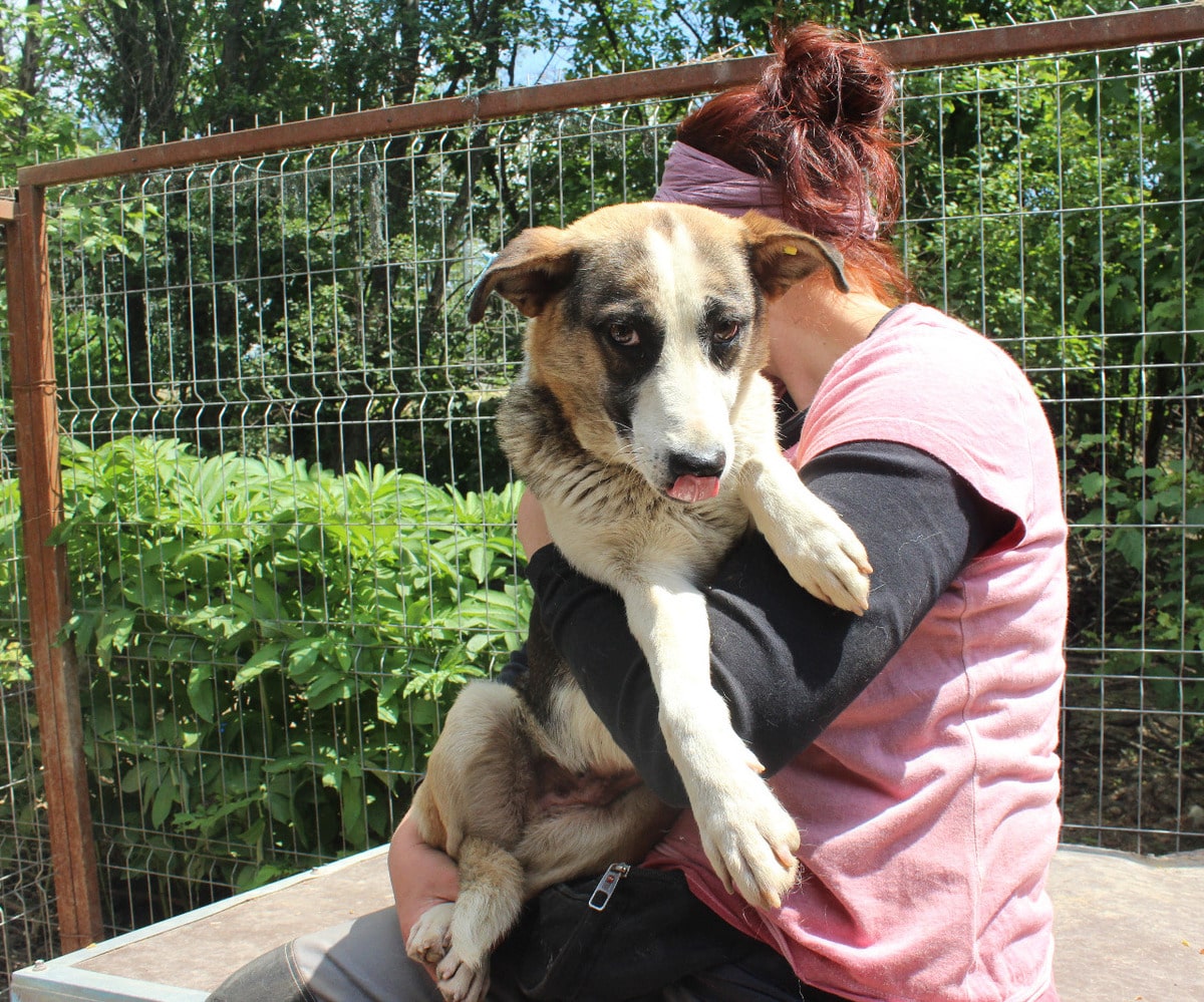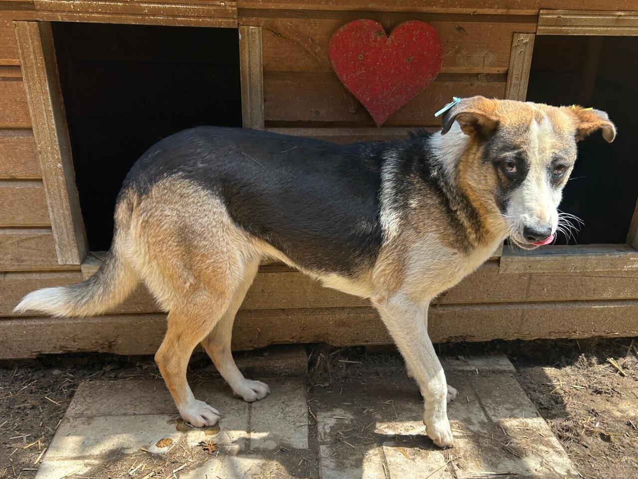 Die mittelgroße, junge Hündin Levi, sitzt schon länger in einem gemischten Zwinger mit acht weiteren Hunden. Trotz wenig Menschenkontakt hat sie keinerlei Ängste entwickelt. Sie hat uns sofort freudig begrüßt und ist auf das Hüttendach gesprungen, um möglichst viel Aufmerksamkeit zu bekommen. Sie ist eine total verschmuste hübsche, tricolor Maus, die es in vollen Zügen genossen hat sich den Bauch kraulen zu lassen. Man hat ihre Freude darüber in ihren Augen strahlen gesehen und sie suchte immer wieder aktiv unsere Nähe. Während des Streichelns kam sie immer mehr zur Ruhe. Sie ist mit allen anderen Hunden verträglich und ging Konflikten aus dem Weg. Hoffentlich findet diese sehr aufgeschlossene Hündin schnell ein warmes Körbchen, damit das Bauchkraulen für sie keine Seltenheit bleibt.
